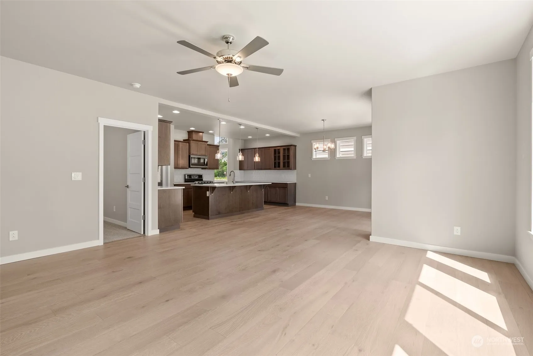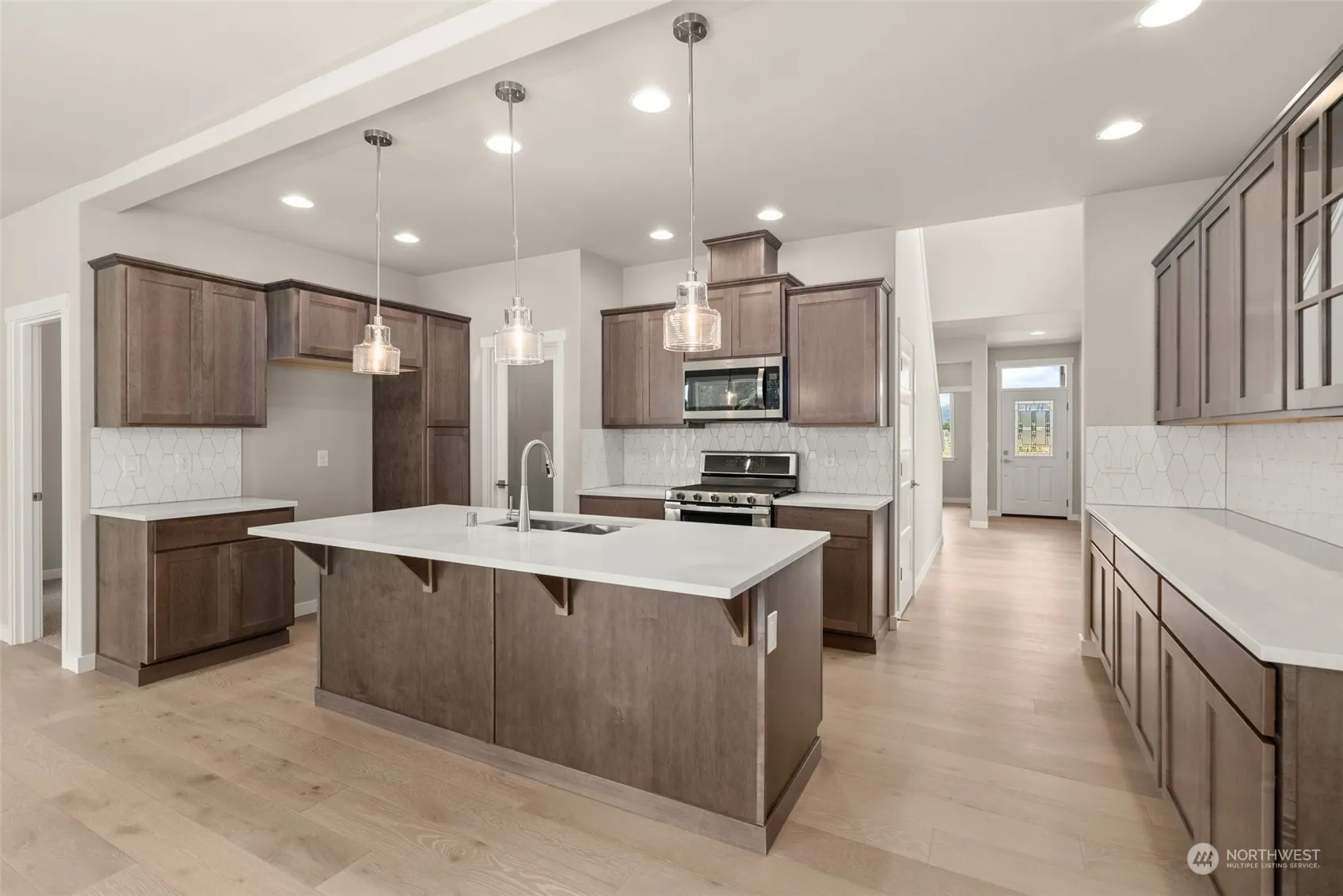 Discover affordable luxury in this stunning new home in Skyview Estates by Rob Rice Homes! Enjoy the versatility of the Dogwood plan featuring a main floor office and a spacious upper-level bonus room + 4 bedrooms! The kitchen boasts “Charcoal” Maple cabinetry, quartz counters with a full tile splash, a gas stove with a microwave/oven combo, and a convenient walk-in pantry. Hardwood flooring enhances the entry, kitchen, dining and living room, while contemporary design elements like white painted millwork and quartz counter tops throughout add a touch of elegance. Covered patio and and full privacy fencing and landscaped yard. Energy-efficient features: solar panels, heat pump, and electric hybrid hot water tank.