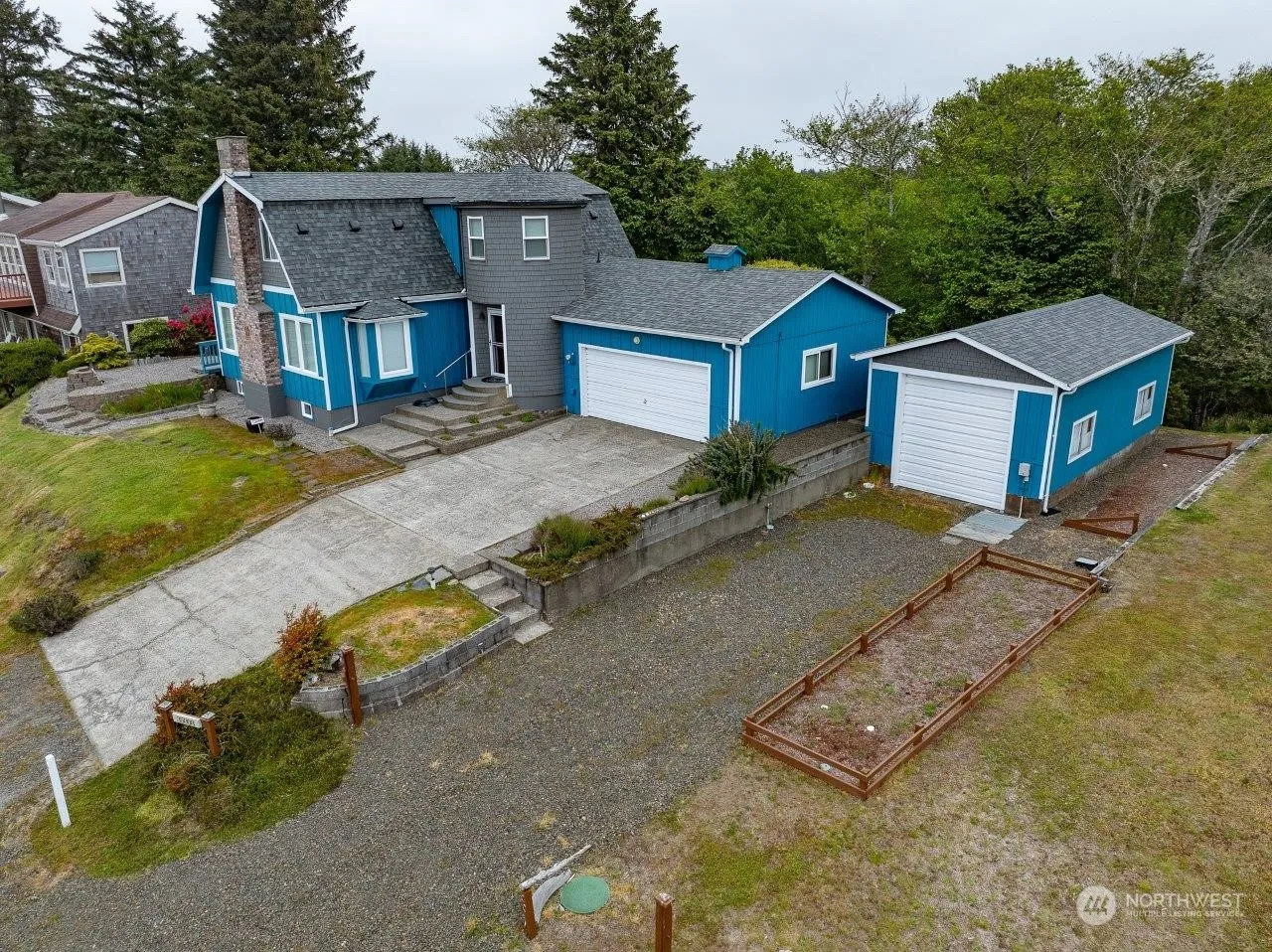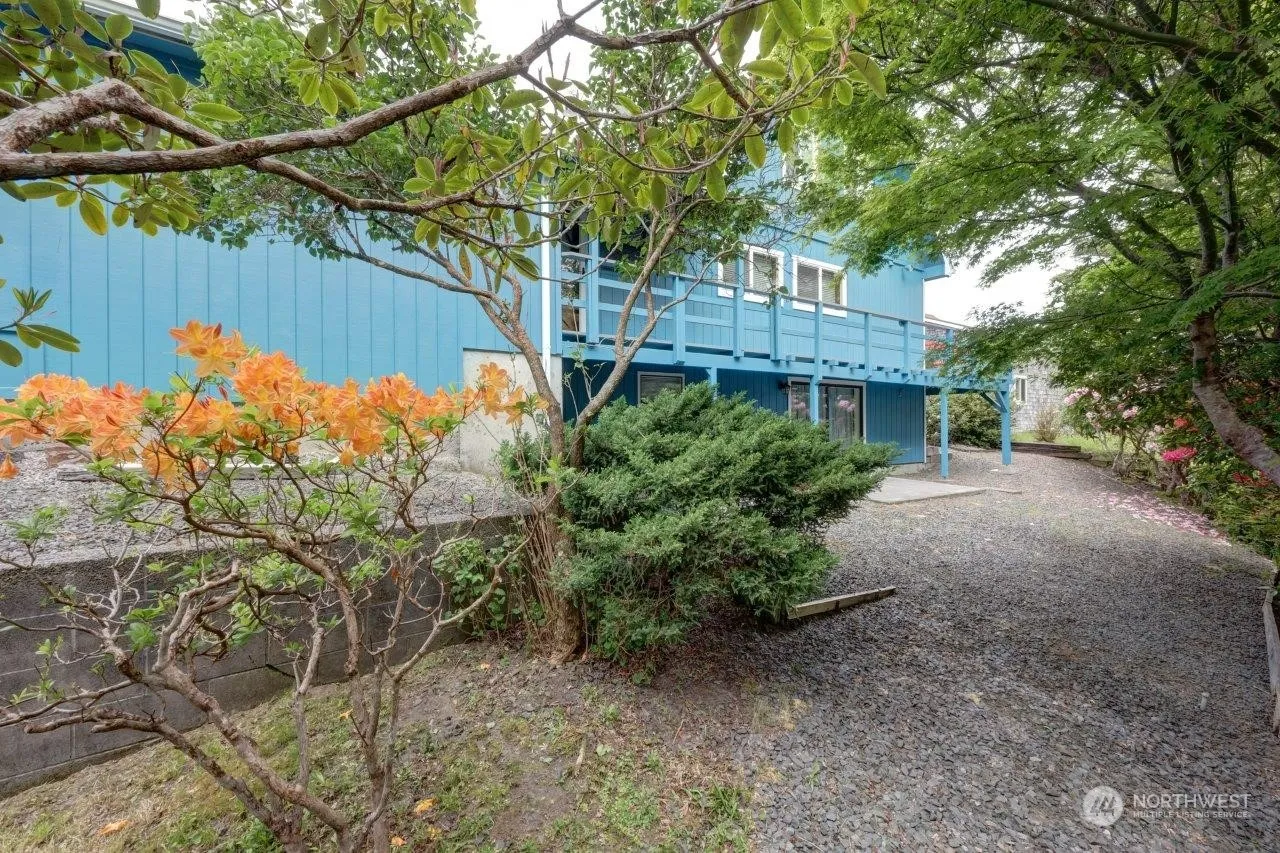 A spectacular OCEAN VIEW home sits high on the ridge with sensational views. The backyard is a nature preserve. With easy-care landscaping and front & rear decks, it exudes charm & serenity. The west side is a wall of windows with 2 wood-burning fireplaces, an expansive kitchen with abundant cabinetry, a primary bedroom, baths & utility all on the main floor. 2 bedrooms upstairs w/full bath + office w/view. Daylight basement offers Rec room, bathroom, extra storage, and 4th bedroom if needed. A ducted wood stove supplements heat for the whole house. Attached 22 X 24 2-car garage + 16 X 32 RV garage & storage throughout. The home has been lovingly maintained and is ready to move in.