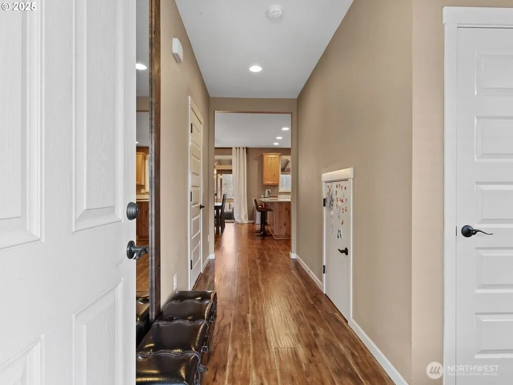 Well maintained home in great close in location! Nice layout , laminate floors throughout, beautiful kitchen w/pantry and island, quartz counter tops & stainless steel appliances, 3 good size bedrooms , Primary bedroom w/walk in closet and private bath, laundry room w/ sink, pre wire for central vac, 9 ‘ft ceiling, fully fenced yard w/covered deck, fruit trees , garden area, backs to green belt! Very private ! Neighborhood park !