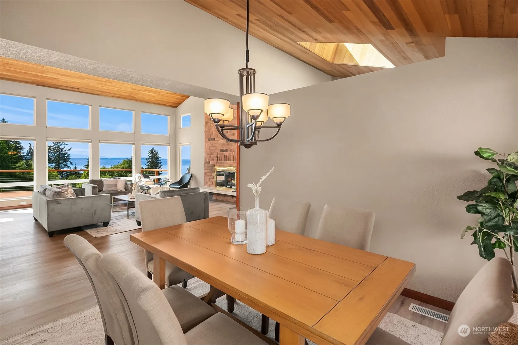 Gorgeous PNW house with pickleball court and incredible views of the Puget Sound from nearly every room! Large, airy living room w/ floor-to-ceiling windows, vaulted cedar ceilings, cozy fireplace & adjacent dining area and kitchen. Large deck is perfect for sunbathing, al fresco dining & watching the sunset. Wake up to Puget Sound views from the main floor primary bedroom, which features its own deck! Endless possibilities w/ lower level, which is plumbed for wet bar, MIL quarters or yoga room. Enormous backyard features pickleball/sports court, large grassy area & plenty of space for gardening. Large 2-car garage + additional detached/covered 2-car or RV/boat parking. Great location in the beautiful Meadowdale neighborhood. Pre-inspected.