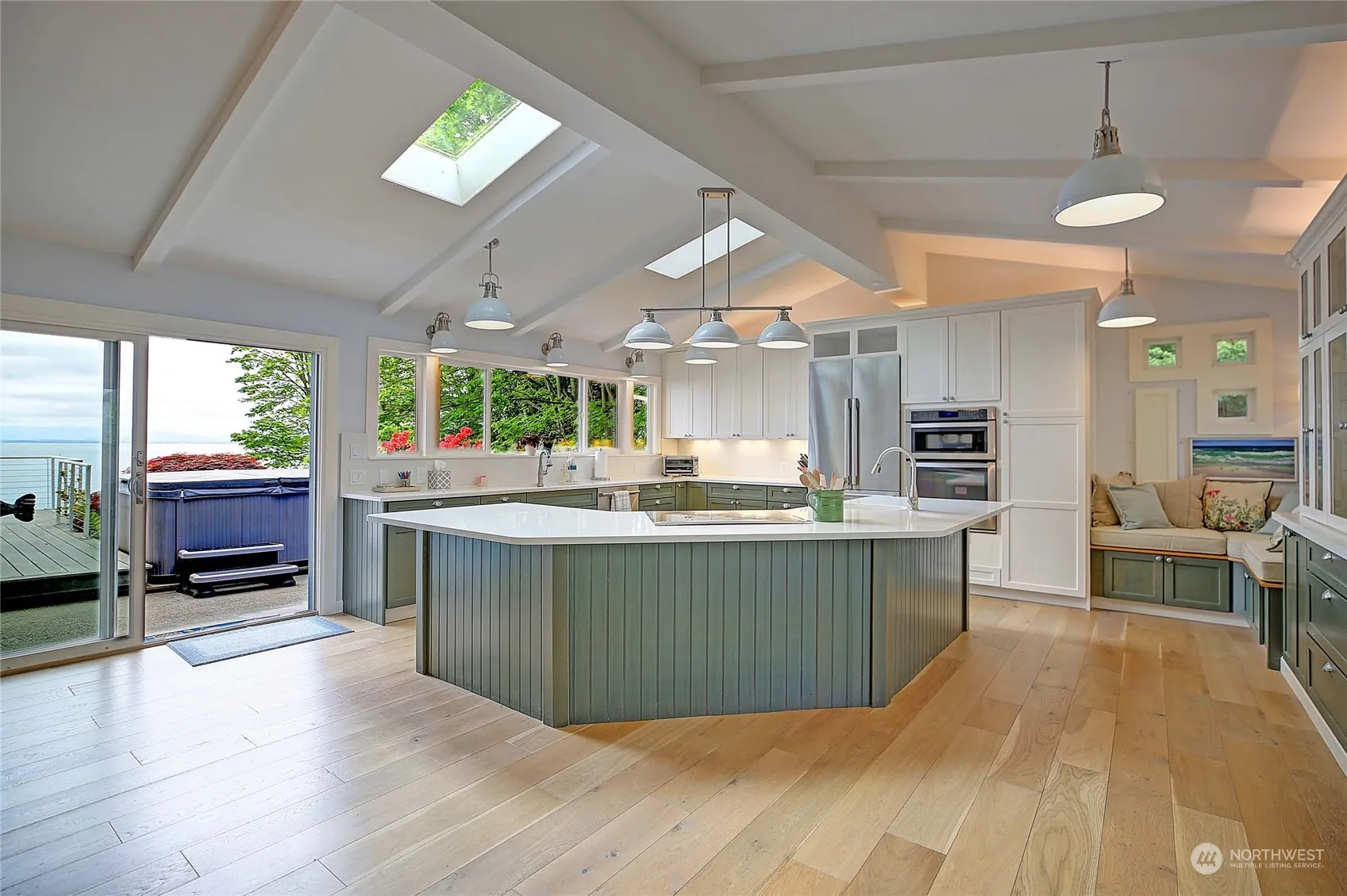 Settle into the westside waterfront charmer. Elegantly remodeled through out, stainless steel appliances, Dacor built-in fridge, quartz countertops, California Closets plus loads more which are a must see first hand. 3 bed 2 bath 1 story with walkout basement. Sunrise or sunset enjoy your private hot tub retreat with views of Mount Baker and Saratoga Passage. Take your boat out from your private boathouse just in time for the PNW Dungeness Crabbing season.