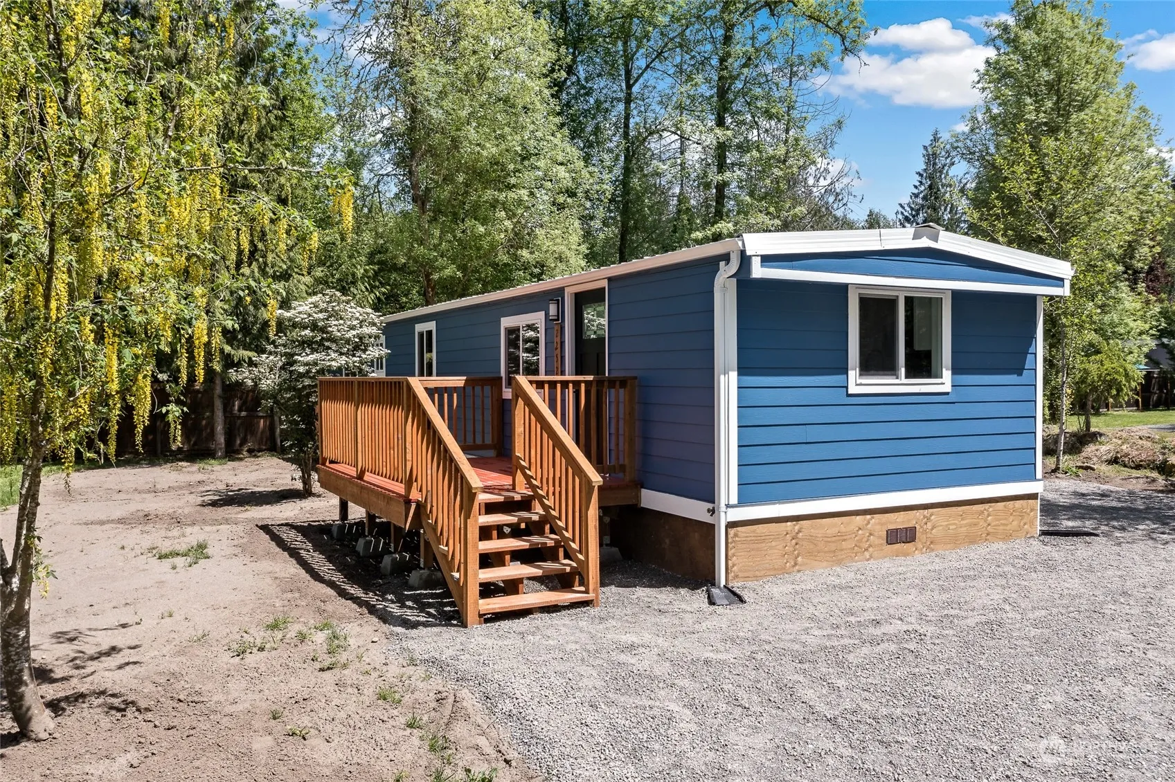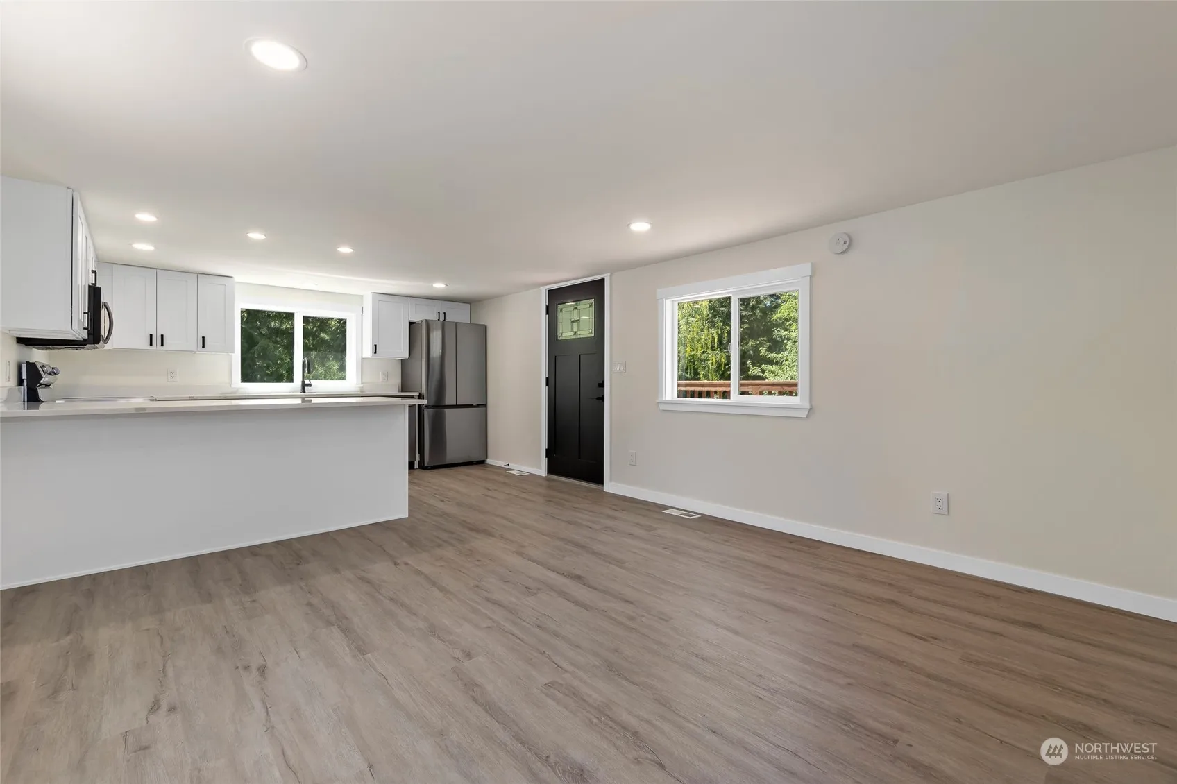 Better than NEW 2 bedroom 1 bath home setting on a large .6+ acre lot. Walk inside and fall in love with the open floor plan & designer finishes throughout. Brand NEW kitchen featured white cabinets, quartz countertops & stainless steel appliances. Bathroom has been completely updated with NEW double sink vanity & tiled tub surround. Other upgrades include NEW millwork, doors, interior paint, fixtures & flooring throughout. Walk outside onto your brand NEW deck and overlook the park like setting, perfect for entertaining guests.