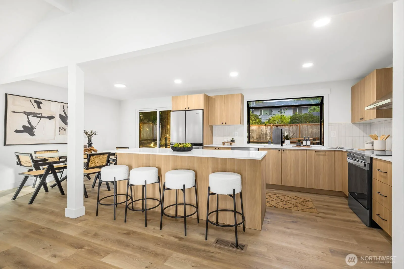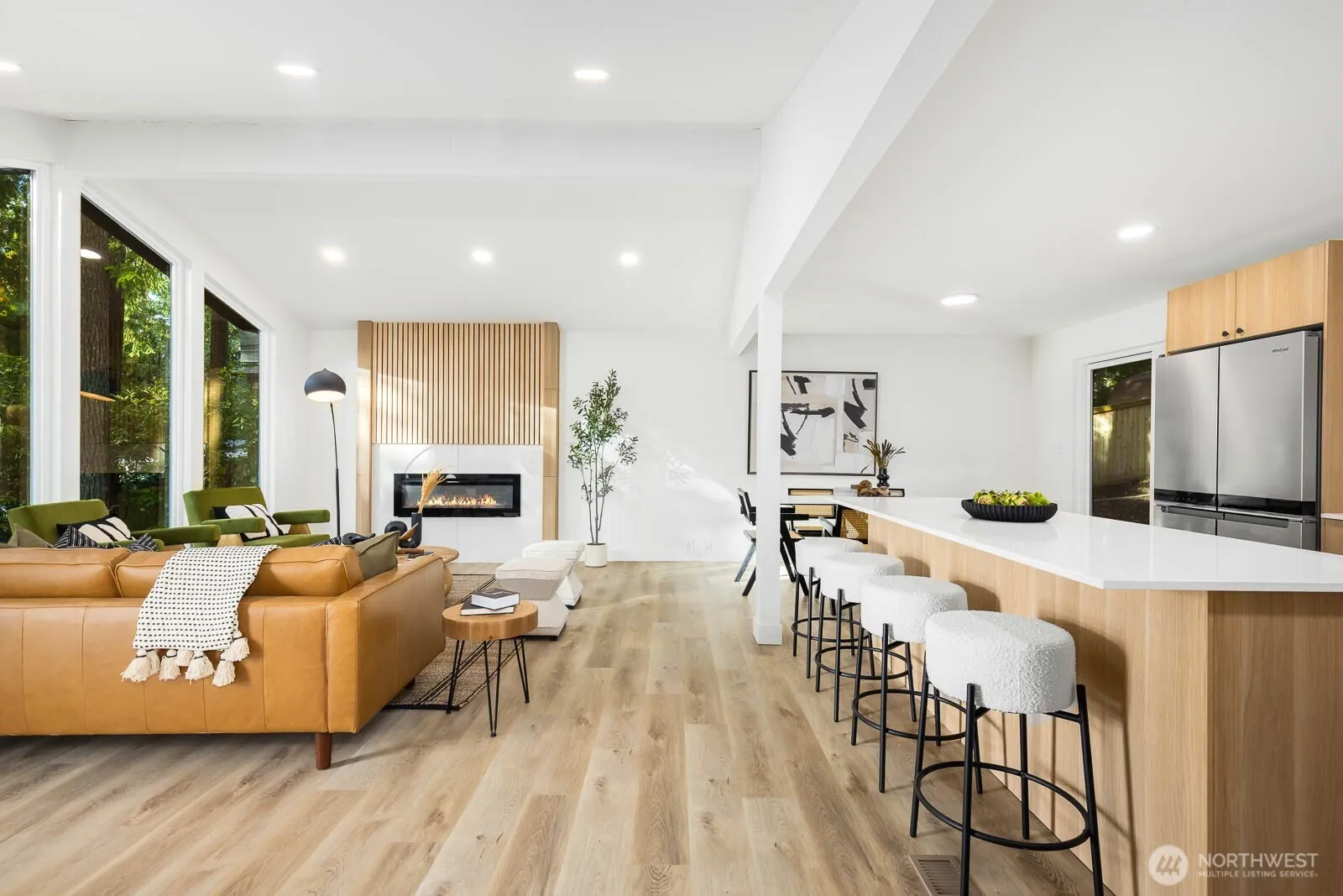 Discover this bright and beautiful, fully remodeled home just a walking distance to Pine Lake, where vaulted ceilings invite an abundance of natural light into the modern and spacious kitchen and dining rooms, seamlessly flowing into a stylish living room adorned with elegant accents and recessed lighting. Upstairs, enjoy two primary suites that make this home ready for multi-generational living or long-term visitors. Downstairs, a generous second living room, complete with an attached extra bedroom. Step outside to the massive, newly built deck and fire pit, amid fresh landscaping in a fully fenced yard. Enjoy a new driveway leading to the spacious three-car garage. Within the award-winning Issaquah School District.
