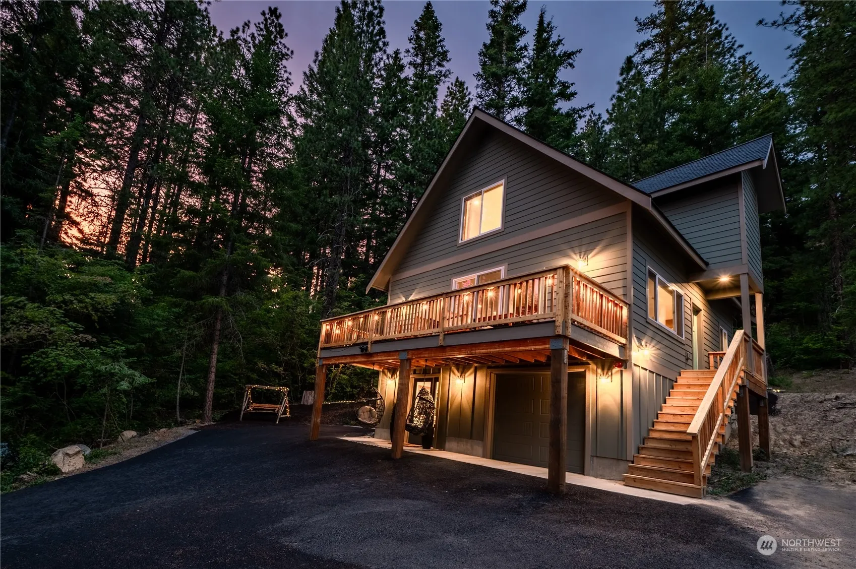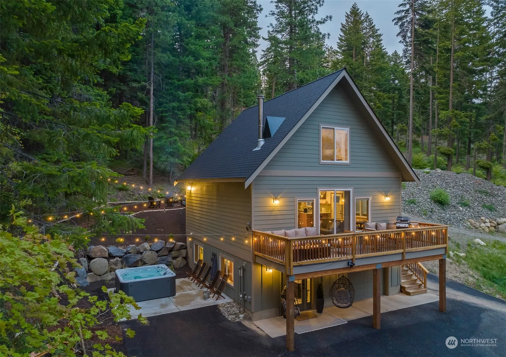 Better than new luxury mountain cabin nestled at the top of Pine Loch Sun that is set up as a 4 bedroom (2 are non conforming). Exquisitely detailed w/rich, curated materials that are simultaneously modern, rustic & warm. Exacting standards & attention to detail that only a small, craftsman/family builder can execute are apparent everywhere. The one-of-a-kind live-edge accent wall, the rare Knotty Alder cabinetry, and the solid wood interior doors & trim mirror the lush textures & colors of the PNW. You’ll want to cozy up around the woodstove after a long jacuzzi. Every touchpoint delights in this turn-key 1600 SF retreat. 220v car charger, A/C, fully paved driveway .44 acre lot. Everything stays, fully ready to go Airbnb/VRBO!