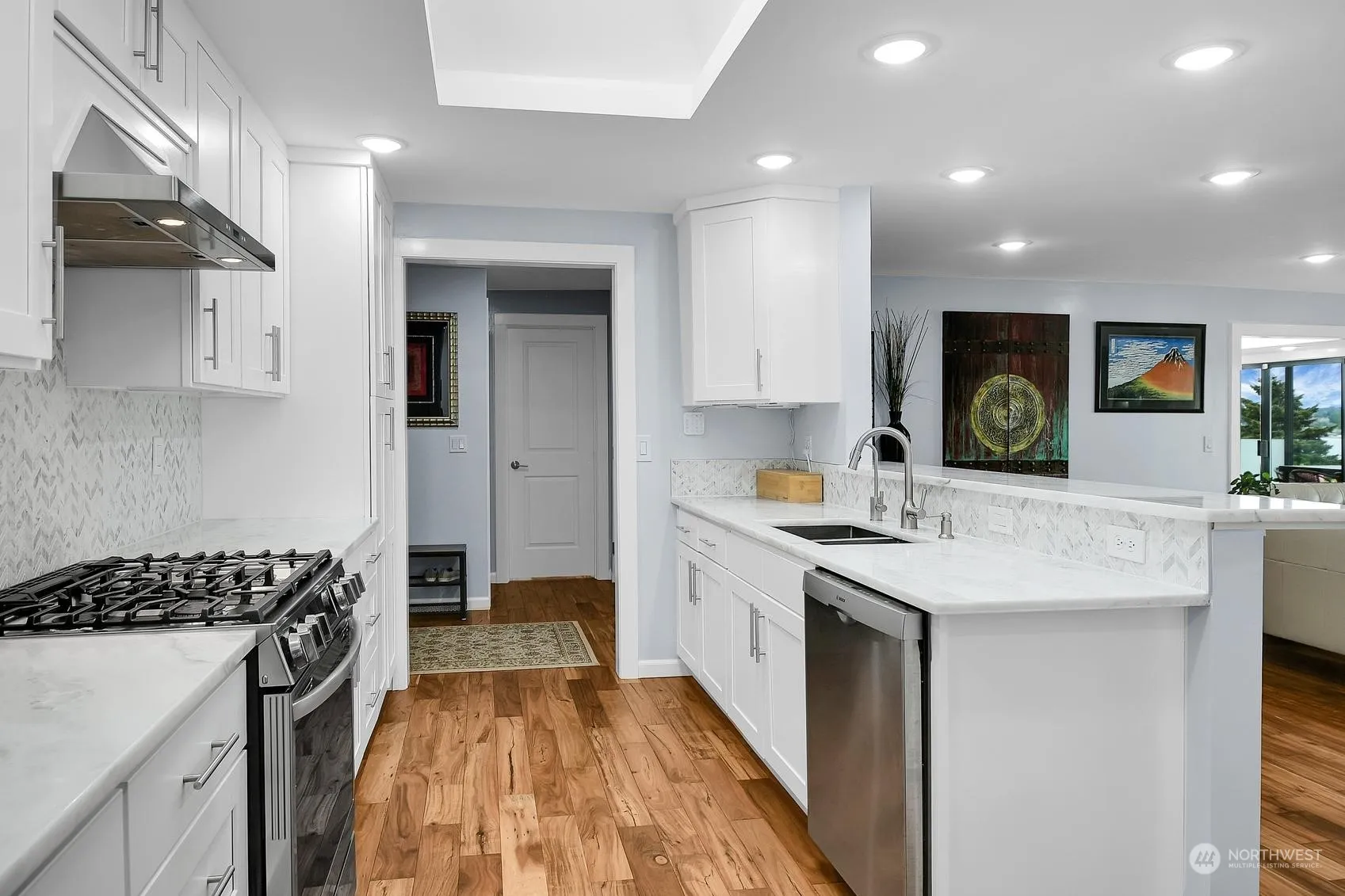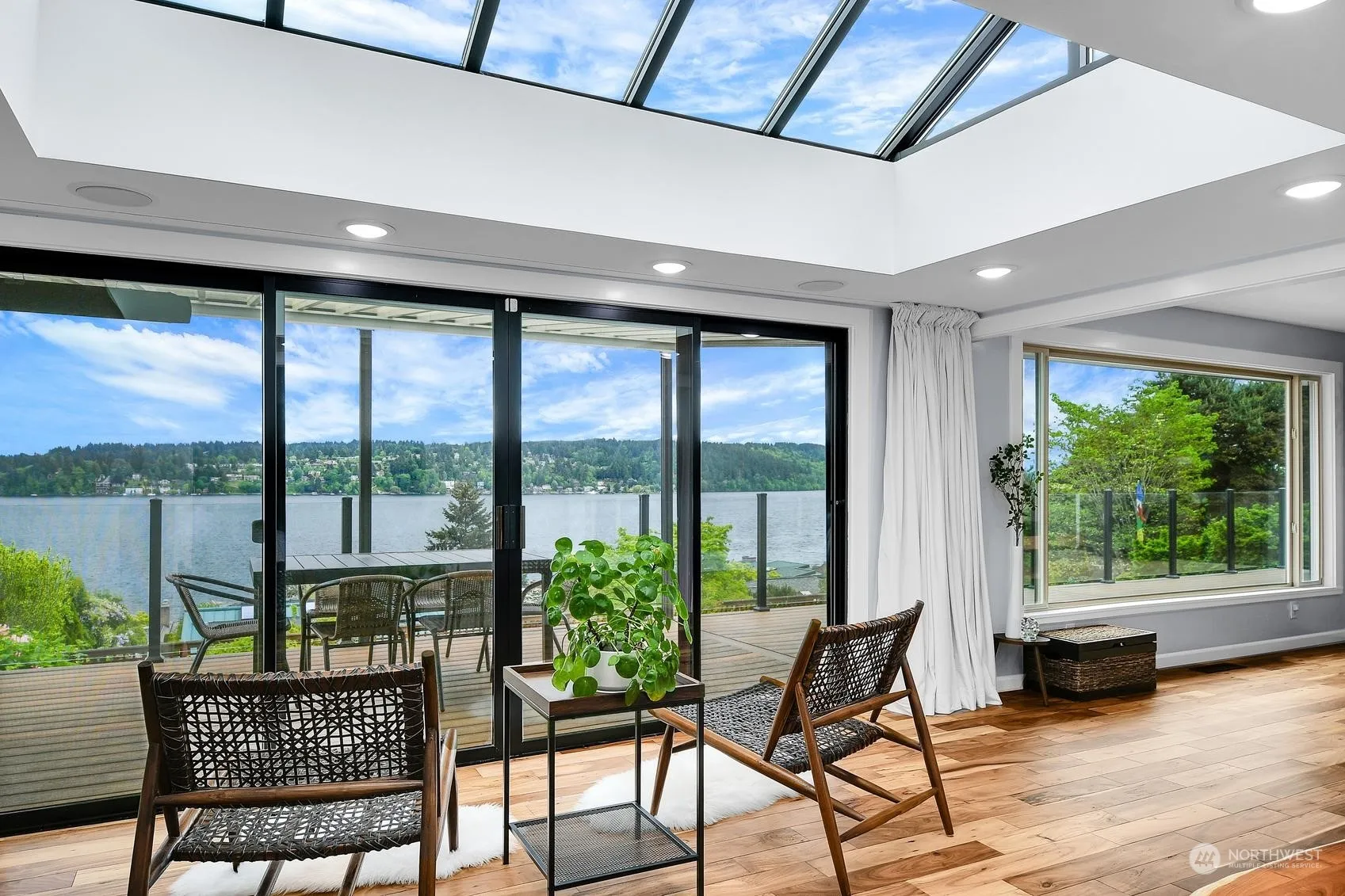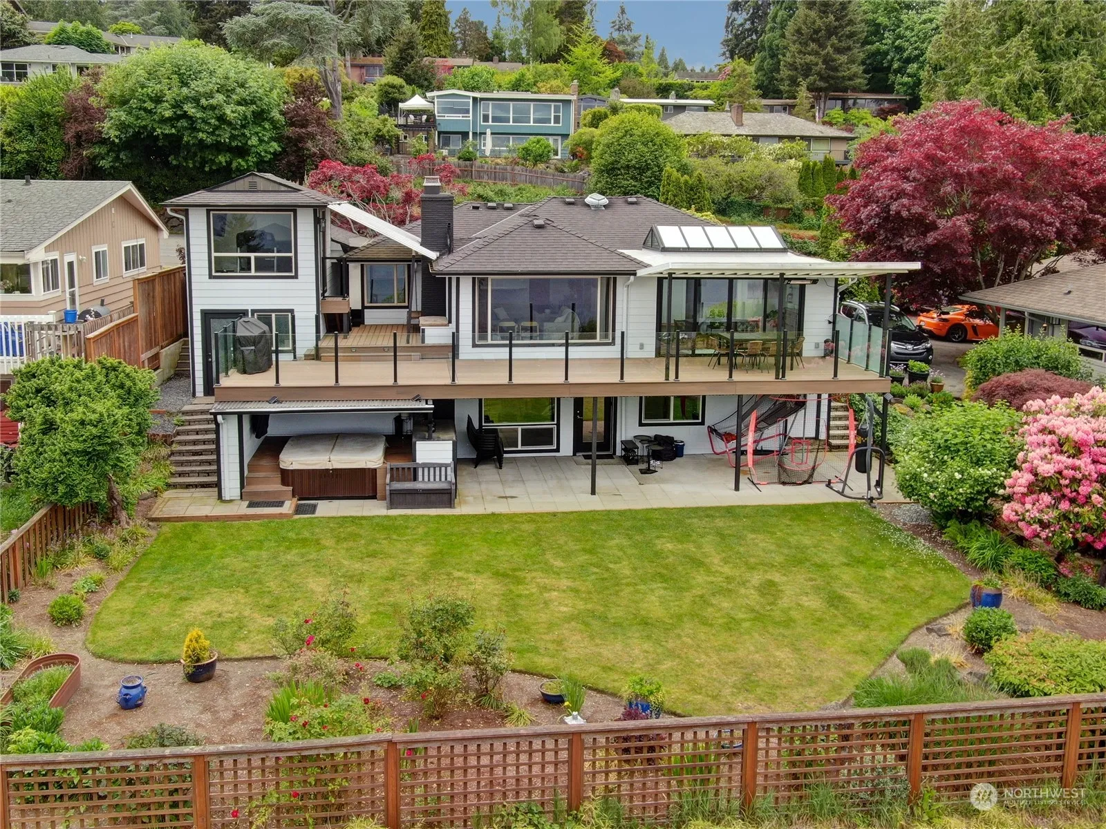 This exceptional home has sweeping views of Lake Washington & the glorious Cascade mountains. Completely remodeled in 2021- this 4 bdrm, 3 bth home has an open floor plan, perfect for lounging & entertaining. The living room opens to the back deck that overlooks the lake & the beautiful fully fenced backyard. Watch activities unfold on the lake with spectacular firework displays, boats, float planes, eagles & incredible sunrises. This home is deeded into the very desirable private Sheridan Beach club which offers a pool, park, pickle ball court & access to Lake Washington. Walking distance to the Burke Gilman trail, Lake Forest Park town center and Brookside elementary school. A two car attached garage plus another 1 car completes this home