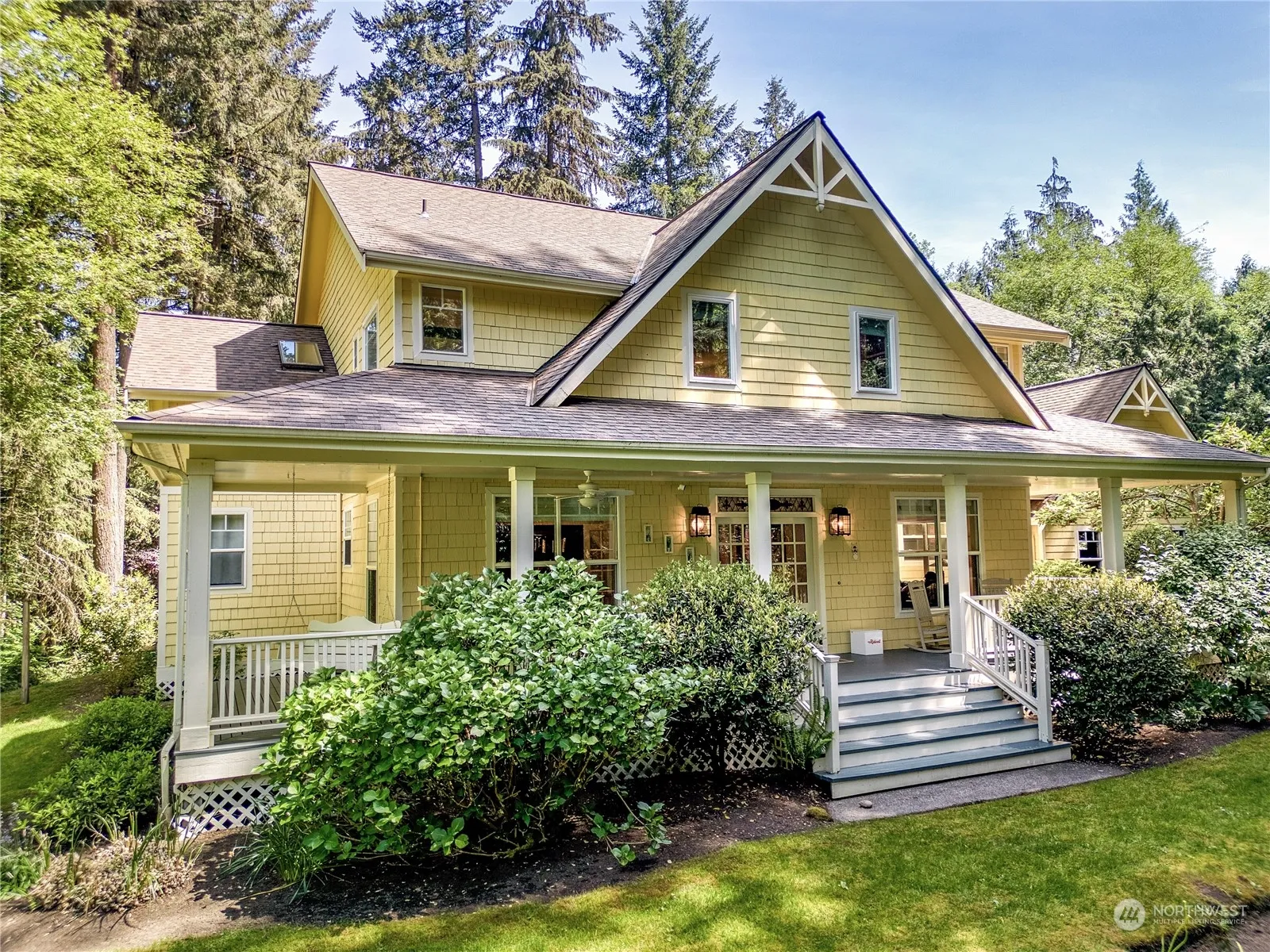 Embrace the ‘best of both worlds’ concept in this enchanting modern farmhouse. A private oasis nestled on a large, sylvan lot, that is also mere minutes to ferry, town & schools. Serene views out to gorgeous greenery, as well as sunbathed patio, & gardens. A wrap around front porch & formal entry beckon, while a fabulous great room, w/statement fplc flows effortlessly outdoors – the ultimate in summer entertaining. Stunning new kitchen steals the show -impeccably executed storage & prep space w/Liebherr, Aga & Bosch appl’s for the assist & generous island w/space to gather. Main floor media rm, private office & upstairs library nook for quieter moments. Three BRs up, including lovely primary suite. 2 car garage, add’l storage & generator