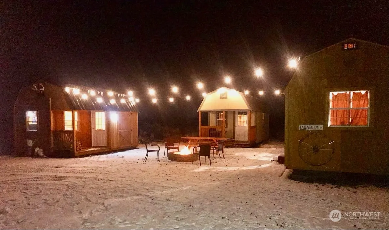 Nestled in a serene area this 1.10-acre off-grid lot offers the privacy you’re looking for & room for everyone! Includes 3 delightful cabins 1) kitchen & dining cabin, 2) sitting area & beds 3) beds & TV. They come furnished w/everything & a sweet firepit in the center! (Watch attached virtual tours.) Includes a 2005 Dutchman Aerolite 25′ travel trailer. Rimrock is in the heart of recreation w/hiking, biking, swimming, boating, & fishing at all the nearby lakes & 300+ days of sunshine. Clubhouse has a rec-room w/TVs, games, movies, vending machines, restrooms, laundry facilities, kitchen w/in & outdoor eating areas, BBQ pit, picnic area, horseshoes, playground, full & partial hookup RV sites, grassy camp area, huge pool w/showers.