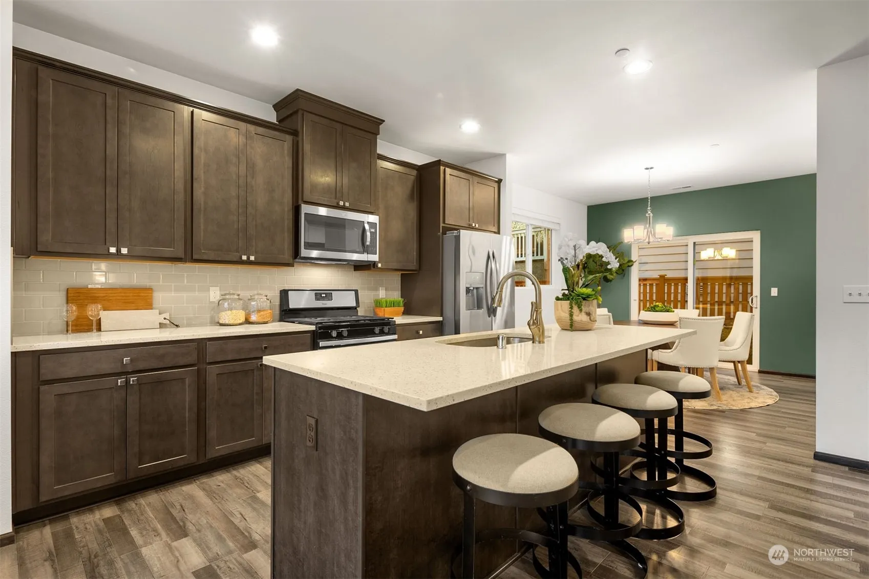 Welcome to blissful living in Boulevard Heights! Impeccable attention to detail unfolds at every turn in this 2,315 SF home. The spacious main floor offers an open concept layout with cozy gas fireplace. Quartz slab countertops, a large island with bar seating, custom cabinets, and stainless steel appliances bring a chef-inspired kitchen to life. Retreat to the primary suite, where you’ll find a tranquil oasis with Cascade views, perfect for unwinding after a long day. Added features include: laundry room, efficient heating, LED lights, and sound-resistant windows. Just minutes to Seattle, SeaTac + I-5 and I-405. The perfect blend of convenience and luxury living!