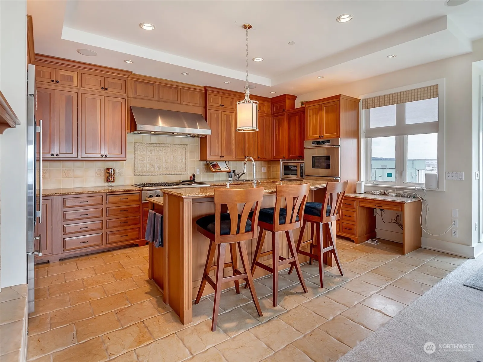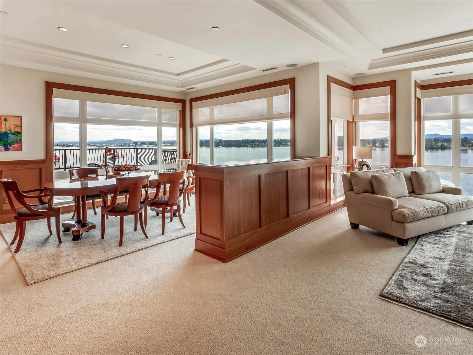 Penthouse living at The Meriwether! Condo offers unparalleled living w/ 3 bed, 3 full baths w/ heated flrs, & 1 half bath in 3,288sqft. Upon entering, you are greeted by cherry wood-paneled walls & mahogany flrs. Property offers views of Columbia River, Mt Hood, Mt Jefferson, & both I5 and I205 bridges. State-of-the-art kitchen features Sub-Zero pull-out refrigerators & Thermador gas stove. Built-ins offer ample storage. Home features 2 bedrm wings: one w/ primary bed & 2 en suites, & other contains 2 beds & 1 full bath. There are 2 separate decks. Condo has 2 water heaters & 3-zone HVAC system. A sound system is throughout home including outside. A wide path for walking & biking stretches from the Meriwether to the Vancouver Waterfront.