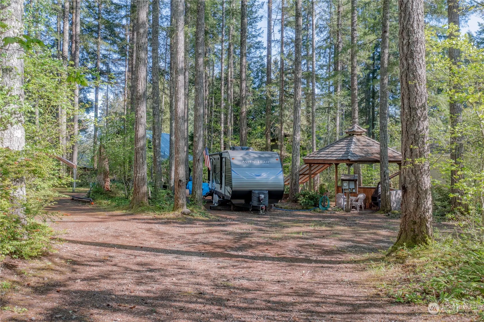 Enjoy the summer in style with his stellar property which has so much to offer! Located in Div 7 at Lake Cushman, it’s just a short walk to the golf course! Water, Power, and a 2 bedroom septic are all on-site making this an ideal plug-and-play vacation lot – or a fantastic build location. Enjoy the warm evenings around the campfire or the gazebo with power and a wood stove! Two driveway entrances make navigating an RV a breeze – plus there’s a covered popup carport for a little extra parking. The RV currently on-site is not included in the sale but is available for purchase. All of this in addition to all the wonderful Lake Cushman amenities – hiking, boating, fishing, golf, sports courts, parks, disc golf, boat launches and so much more!!