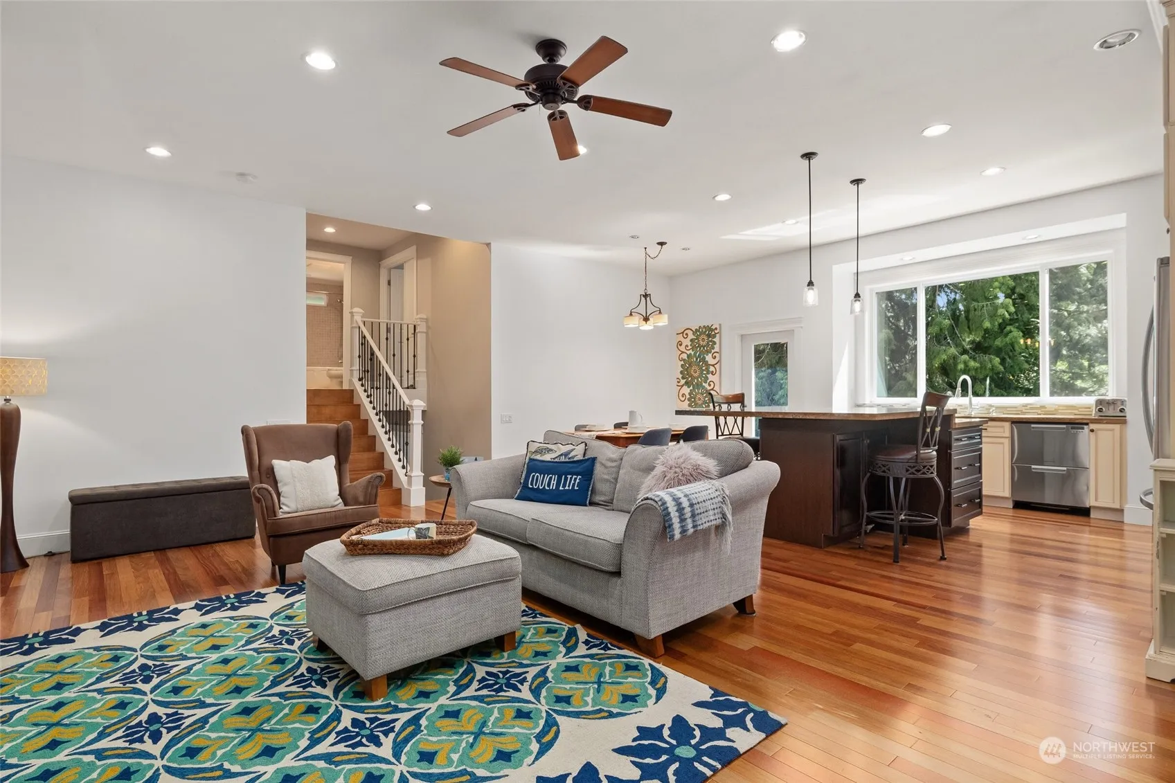Stunning reimagining of this lovely home w expansive 2008 addition. Lots of open spaces and places to gather. Super spacious living & dining rooms plus large main floor den. Kitchen remodel w soaring ceiling features, large island open to great room, huge walk-in pantry, desk, eating nook plus additional storage room. Solid hardwoods throughout main level. Spa like primary suite & two additional bedrooms w hall bth on upper level whilst lower level offers a great guest/extended living option w additional bedroom & 3/4 bth & walk out bonus room. All the spaces you need in all the right places! Homes sits on a level shy acre lot w large entertainment deck, gazebo (hot tub ready) & firepit area. Preinspected. Easy commute & great Iss schools.