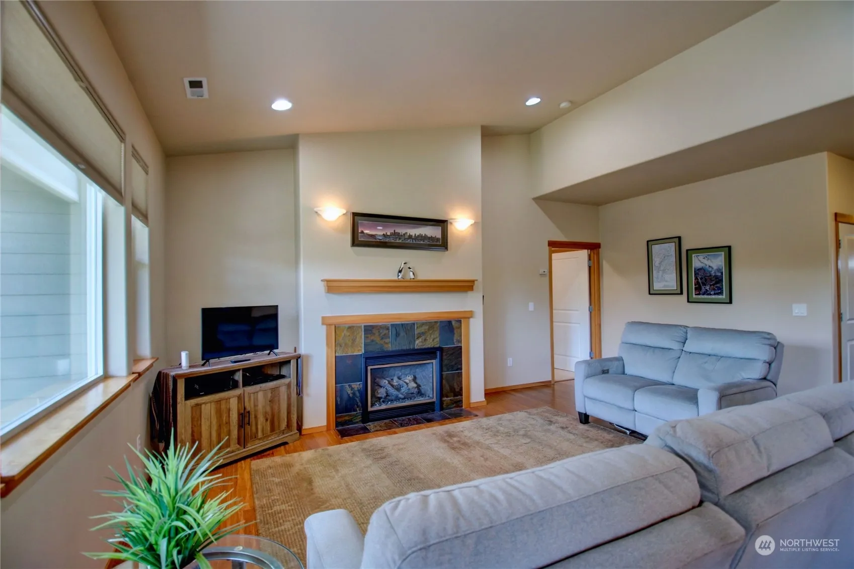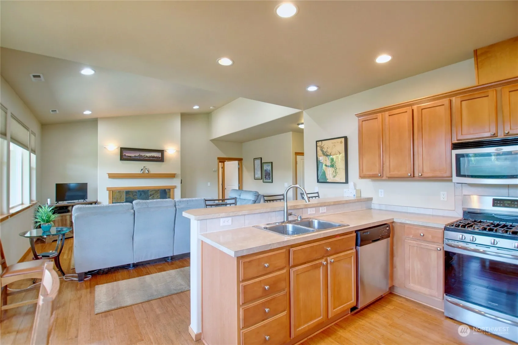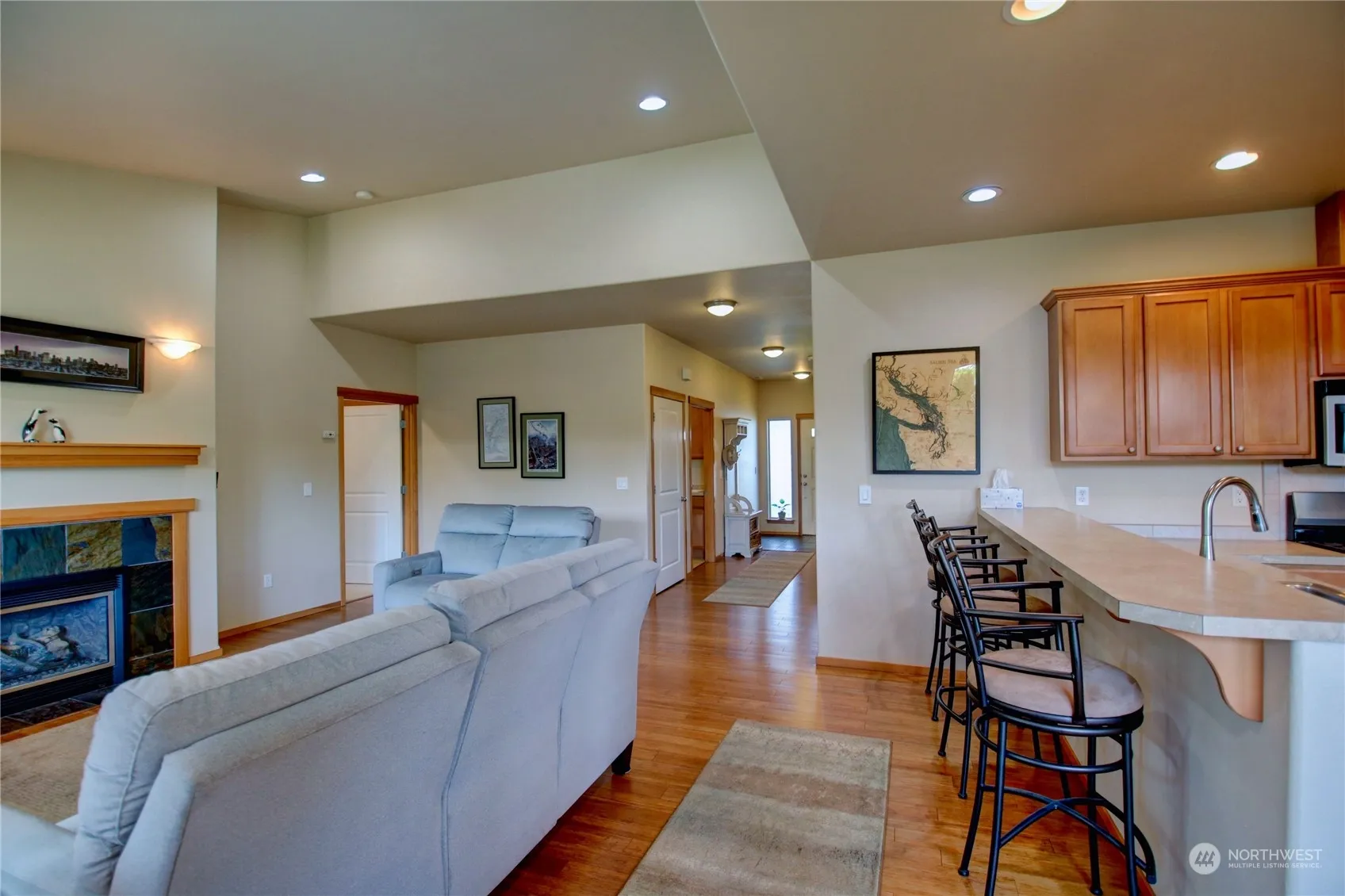 Discover this beautiful Craftsman home featuring 1646 sq ft, 3 bedrooms, 2 baths, one level, high ceilings, bamboo floors, and a gas fireplace. Explore the charm and warmth of this cozy and stylish living space. Spacious kitchen with 5 burner gas range, newer refrigerator, loads of cabinets, large peninsula with eating bar space. Dining area leads to back deck, a portion covered and private backyard w/garden shed.