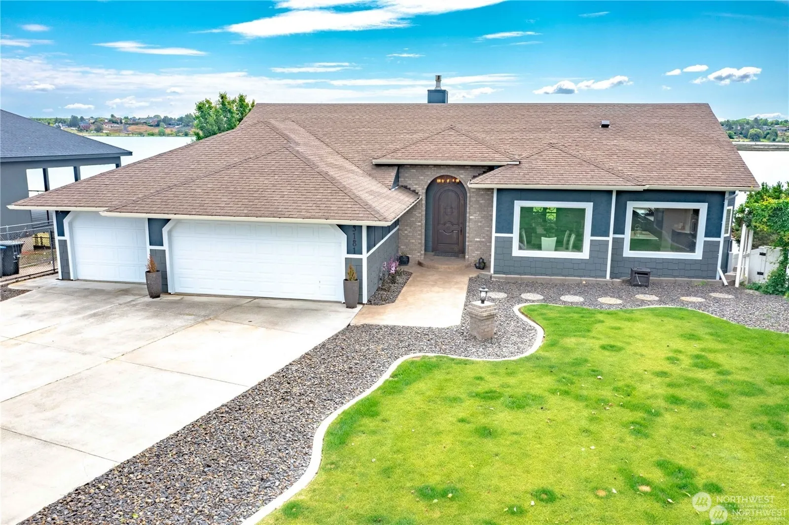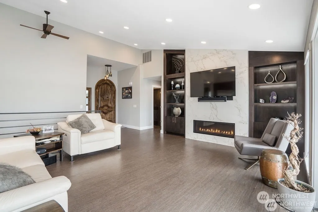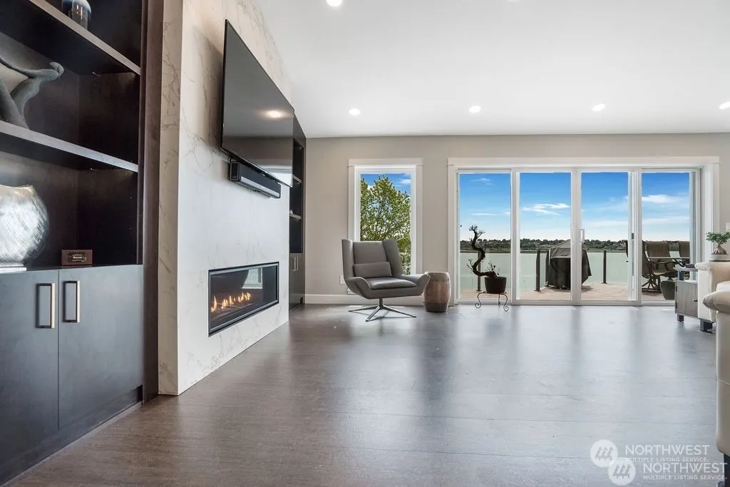 Phenomenal lakefront property w/every luxurious upgrade! This property has been remodeled top to bottom, curb to bulkhead, into the most modern & comfortable 3,400+ sq ft home on Moses Lake. Enjoy natural light & endless water views from the floor to ceiling windows & double open sliding glass door in the open living room & kitchen. Thermador range, custom cabinetry, quartz countertops, touchless faucets & baking suite exude a rich comfort. Primary suite on the main boasts a glass enclosed shower, heater towel racks & expansive closet. The daylight basement hosts 3 bedrooms, open living space, secondary kitchen & easy walkout to the 18’x36′ in-ground pool & spa. 86’+/- of waterfront w/hydro/solar lift, firepit all made for entertaining!
