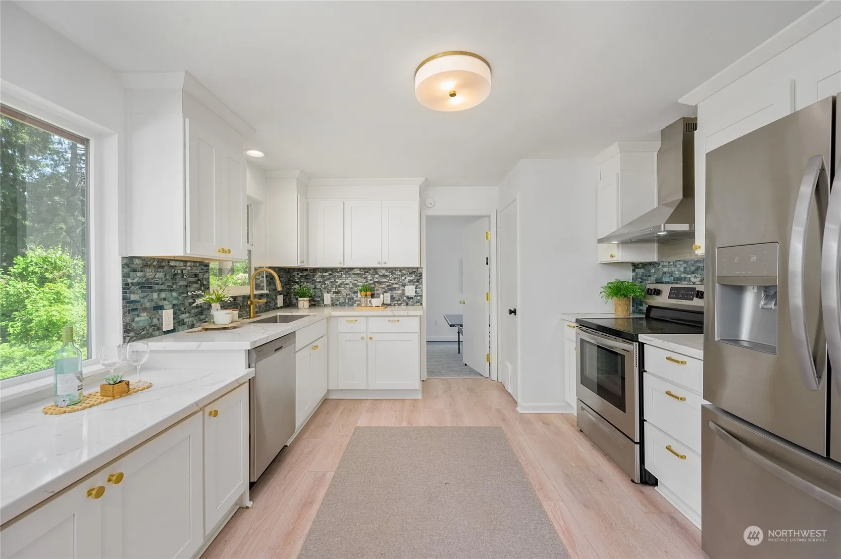 Mid-century daylight rambler on well over 1/4 acre. 3 beds, 1.75 baths all a few short blocks from the (opening Aug 2024) future light rail station! Whole house has too many upgrades to list, all major systems replaced in the last 7 years. Remodel has maintained midcentury charm while blending contemporary style. Finished basement is set up as private quarters with full kitchen, 1 bedroom and 3/4 bath. Basement is permitted as finished space with a separate entrance, easy conversion to ADU. Mature landscaping with new additions offer lots of privacy in a yard that is great for entertaining. All that plus hardwoods under conventional flooring and a private community park a block away! Welcome home.