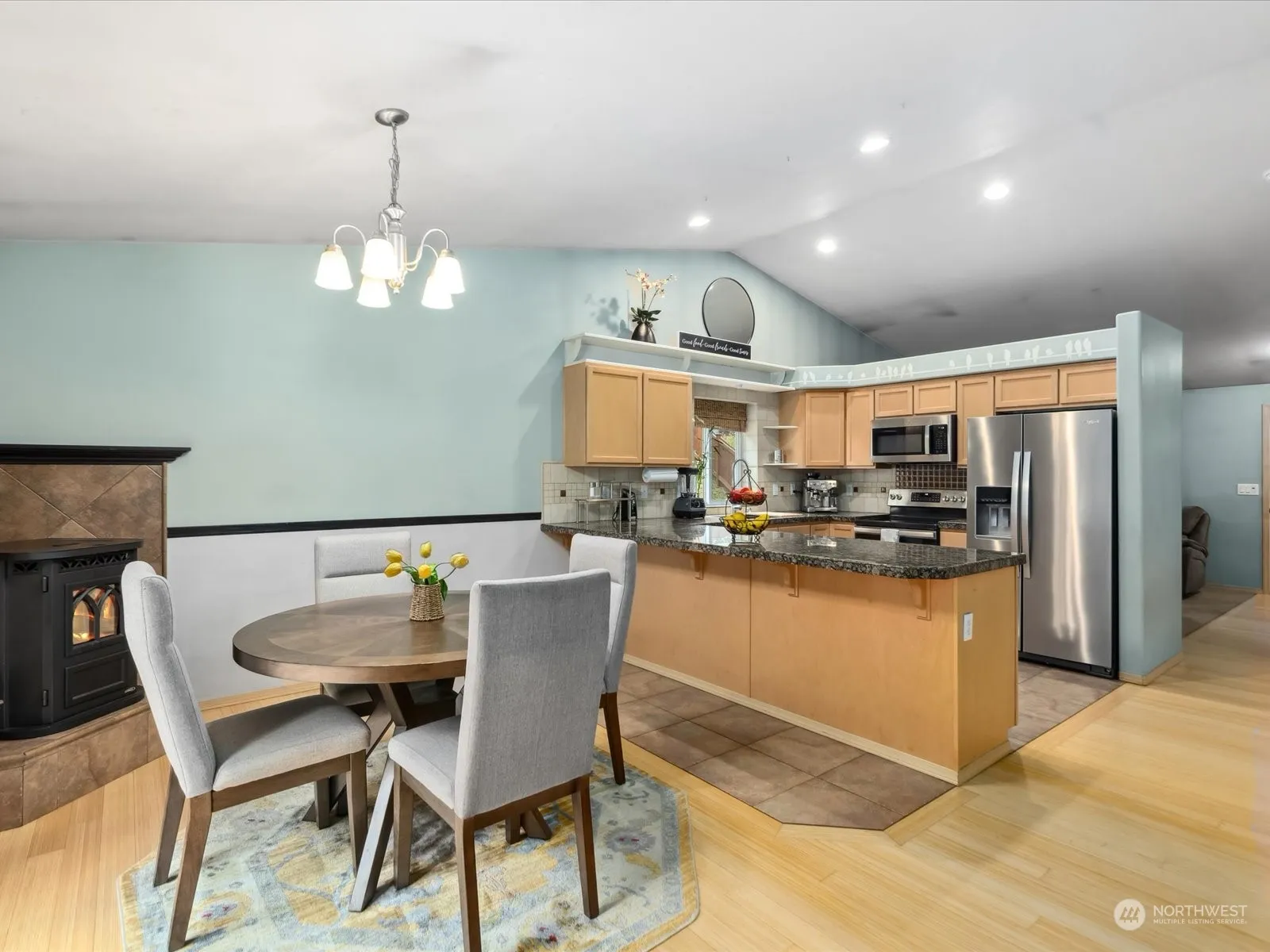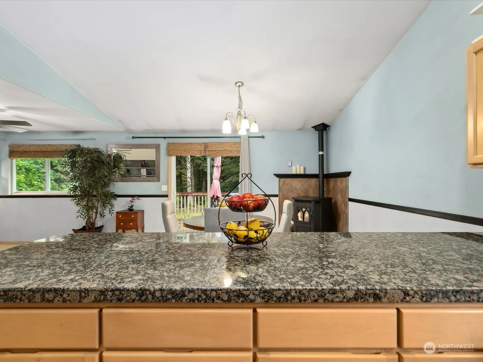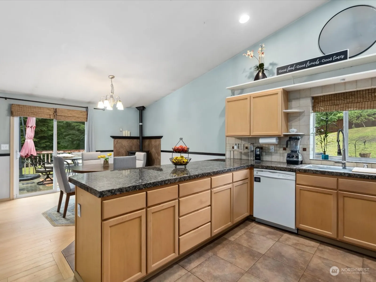 WIDE OPEN SPACES-Gorgeous upgrades! Nestled in a cul-de-sac, this desirable 3-bedroom, 1.75-bathroom rambler offers sanctuary & boasts the perfect blend of comfort & style. Custom tile throughout that exudes luxury. Breathtaking forest views. 1.15 acre yard fully fenced with fruit trees, large deck with slate tile for entertaining, a firepit, & playground set, a shed, plus a 3-car garage with additional cabinetry. Open-concept kitchen with granite tile countertops, double oven, bamboo floors, vaulted ceilings, propane fireplace, & pellet stove for extra warmth. River-rock walk-in shower! NEW ROOF installed 2024! Lots of room for your toys and room to recreate. Private trail from backyard to Pilchuck river beach. No HOA!
