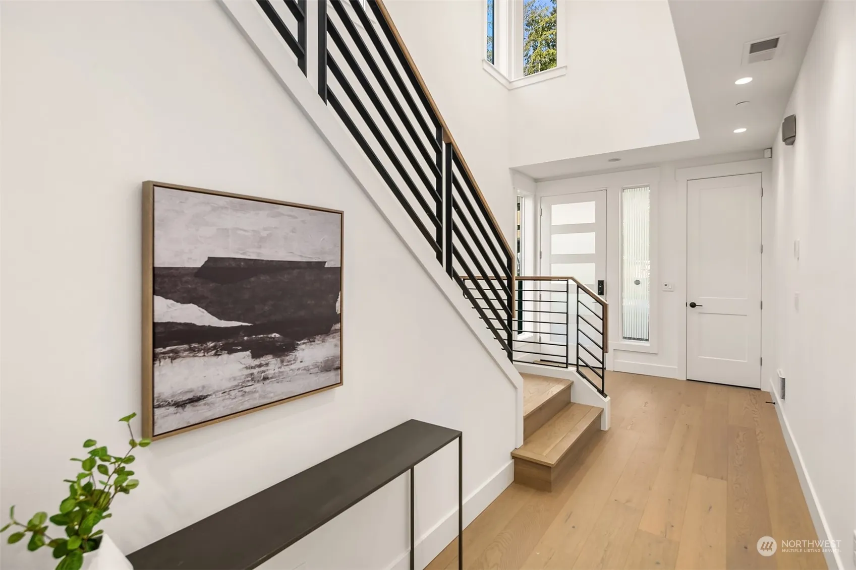 Calm, collected & visually stunning! This one-year new modern Burnstead home shines bright w/ purposeful design & a layout for today’s lifestyle. Premium corner lot w/ extra windows that light every space & bring the outdoors in. Distinctive 2-story foyer punctuated by white oak flooring, dramatic modern railing & chandelier. First level guest suite w/ 3/4 bth, multi-purpose rec room & backyard sanctuary. Form & function on main floor w/ contemporary great room space + genuine office, designer lighting & outdoor deck. The kitchen pops with emerald tile backsplash, high-end appliances, a walk-in pantry & large center island. Sky villa primary suite w/ floor-to-ceiling windows, ultra-lux bath & custom walk-in closet. Perfection at every turn!