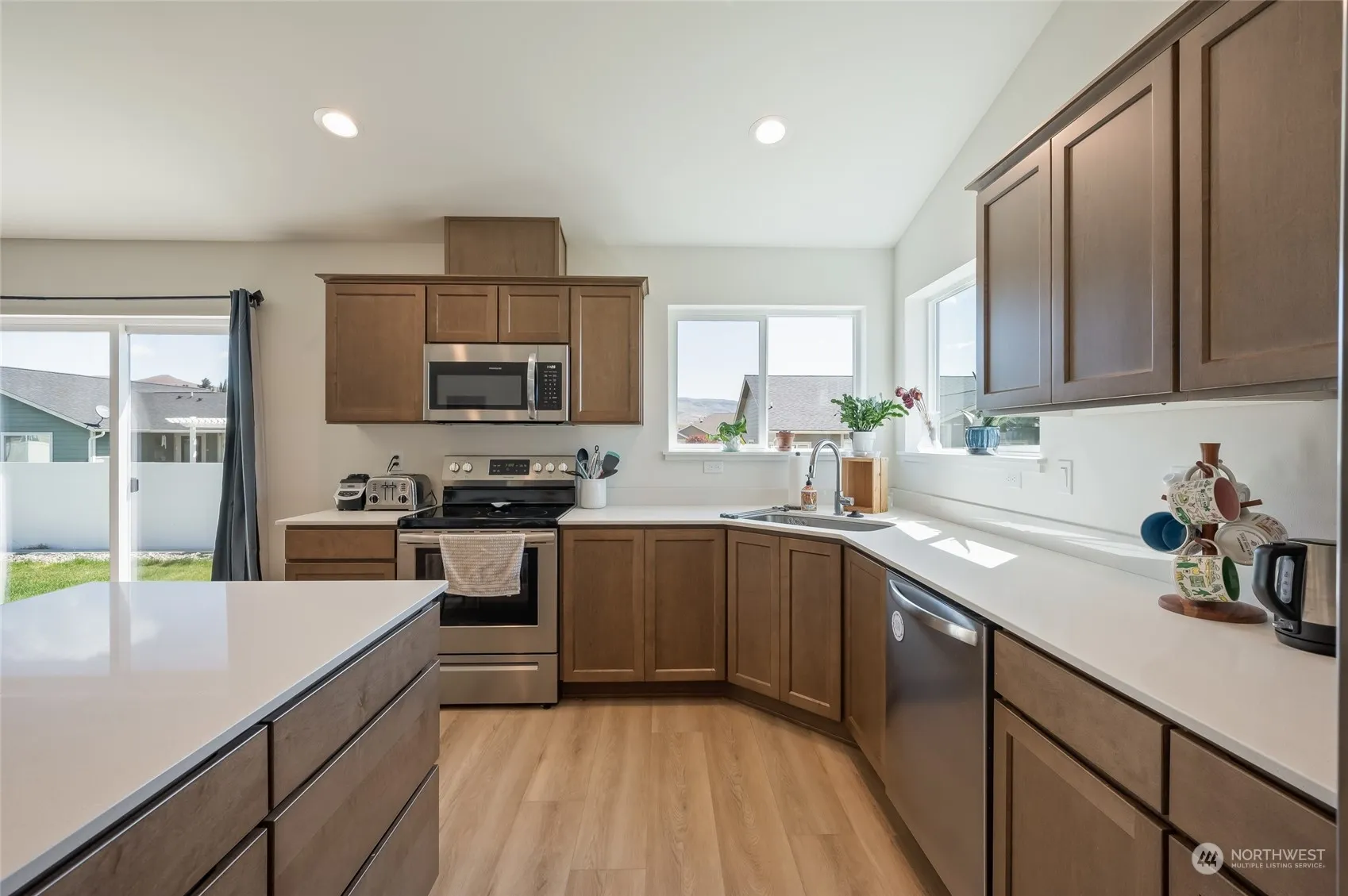$12,000 towards closing costs OR towards interest buydown! Better than new home in Pheasant Hills! This newer subdivision located in beautiful Sunnyslope, is perfect for strolling in the neighborhood! This one level home has a floor plan that everyone will enjoy. Open living, dining and kitchen with vaulted ceilings. Living room is light & bright, Quartz counters in the kitchen. Primary suite is spacious and offers a walk-in closet, double sinks. This home also has a 2-car garage and includes front and backyard landscaping and backyard fencing ($7,000 upgrade). Extras are newly installed glass shower doors & top-of-the line refrigerator.