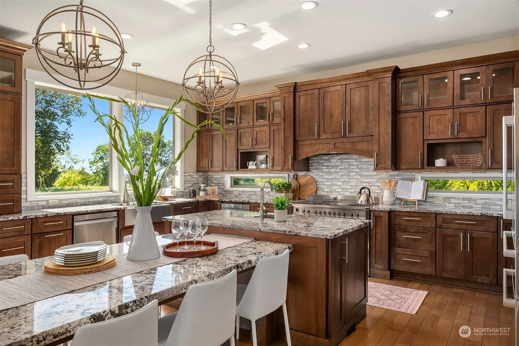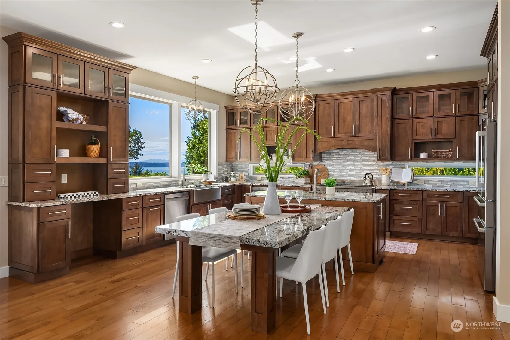 Discover unparalleled luxury at The Reserve, a prestigious gated community offering breathtaking views of the Olympic Mountains & Puget Sound. This 2016-built masterpiece sits on a meticulously landscaped 1-acre lot. Each bedroom boasts an ensuite, with two on the main floor plus an office. The primary retreat features heated floors in the bathroom & a second office or flex space. Enjoy stunning water views from every room flooded with natural light. Relax on the covered patio, relishing PNW summers. Luxury appliances, A/C, 4-car garage, & ample storage elevate this home. The Reserve offers 30 acres of shared open space with walking trails. Only 15 min from freeway, shopping, Narrows Bridge, & schools. Welcome to luxury living perfected.