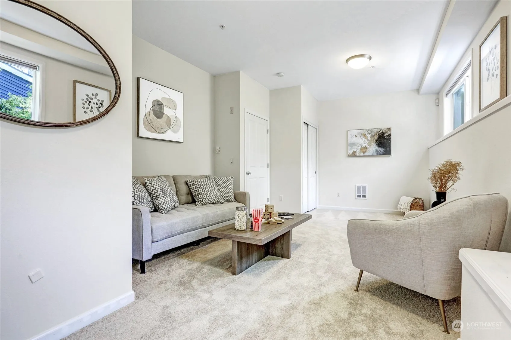 Richmond Beach townhome, corner unit! Large 3 bed/3.25 bath thoroughly updated with mini-split system, redundant radiant in-wall heating, miniblinds, dual hot water heater system, new carpet and new paint throughout. Great floor plan where each bed has its own bath plus a guest 1/2 bath, 2nd dining area is bonus space used as a den/office. Generous attached 2-car garage. Large common area yard for BBQ’s, entertaining, or just taking in the sunshine. Near coffee, bowling, dining and 4 parks: Saltwater (beach), Library, Krukeberg Garden, and Kayu Kayu Ac! Stellar Shoreline Schools to boot!