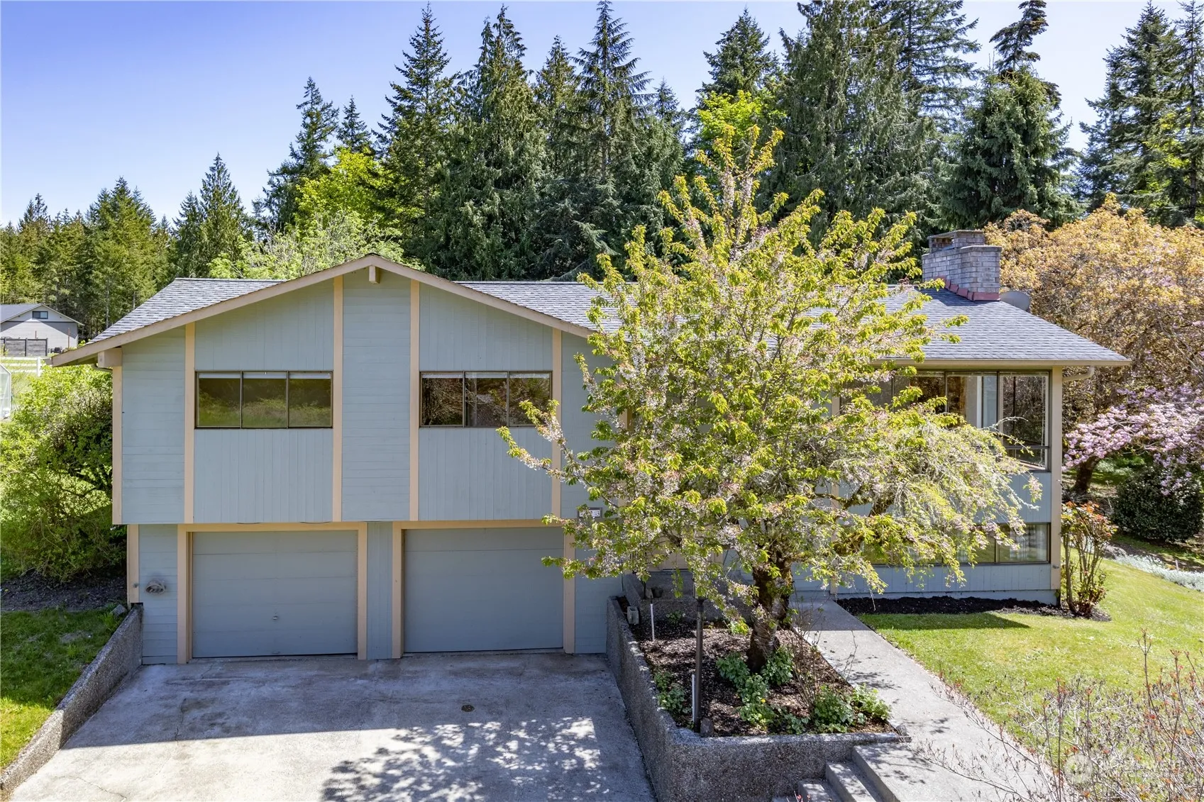 Serene 10 acres in Chimacum Valley with gorgeous territorial and mountain views. The main floor offers sun filled living room w/ propane fireplace, dining to kitchen w/ spacious oversized deck. Down the hall you’ll find a generous sized primary bedroom w/ 3/4 bath, 2 bed/ 1 full bath. 624 sqft finished daylight basement offers great rec room, home office, or flex room. Sliding glass door to patio area that could easily be refenced. 2 car garage and 2 bay carport offers plenty of storage. Enjoy this park like setting on the ‘Hill’ with a wide open lawn, fruit trees, greenhouse and much of the property still forested. No drive-bys, make an appointment with your agent!