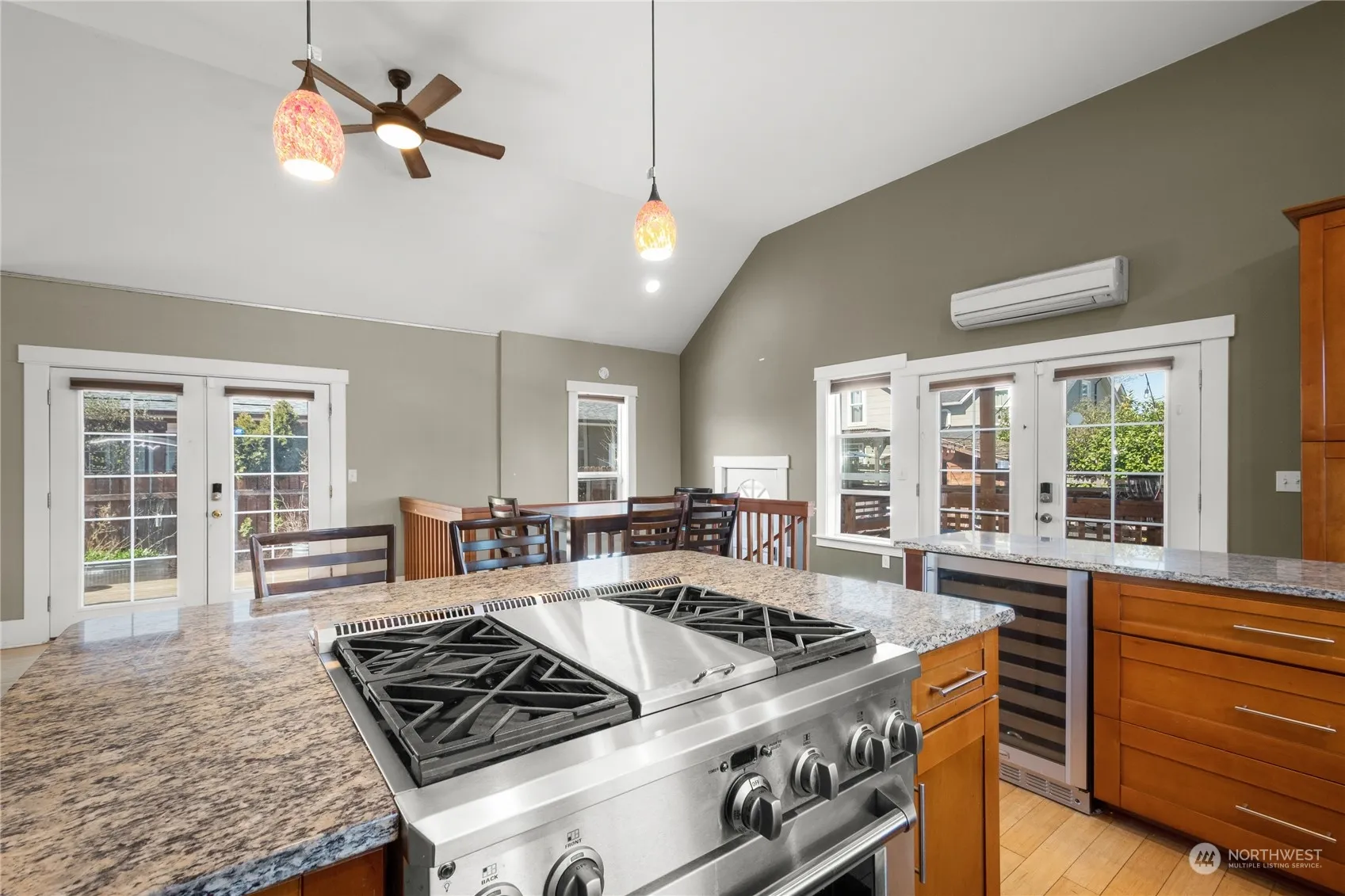 Classic Bungalow-beautifully updated! Enclosed front sun porch welcomes you to this vintage style 1915 beauty featuring vaulted great room with bay window, bamboo flooring and French doors leading to deck. You’ll love the custom kitchen with Cherry cabinetry, granite counters, cook island, gas range, wine fridge & high end stainless appliances. The main bath has heated tile floors with custom walk-in tile shower. Expansive primary bedroom on the lower level includes built-ins & sauna. Utility room includes washer/dryer & offers additional storage & shelving. Enjoy outdoor entertaining with firepit, covered hot tub, private fenced backyard & raised garden beds. Extras include ductless HVAC, tankless water heater, water filtration/softener.