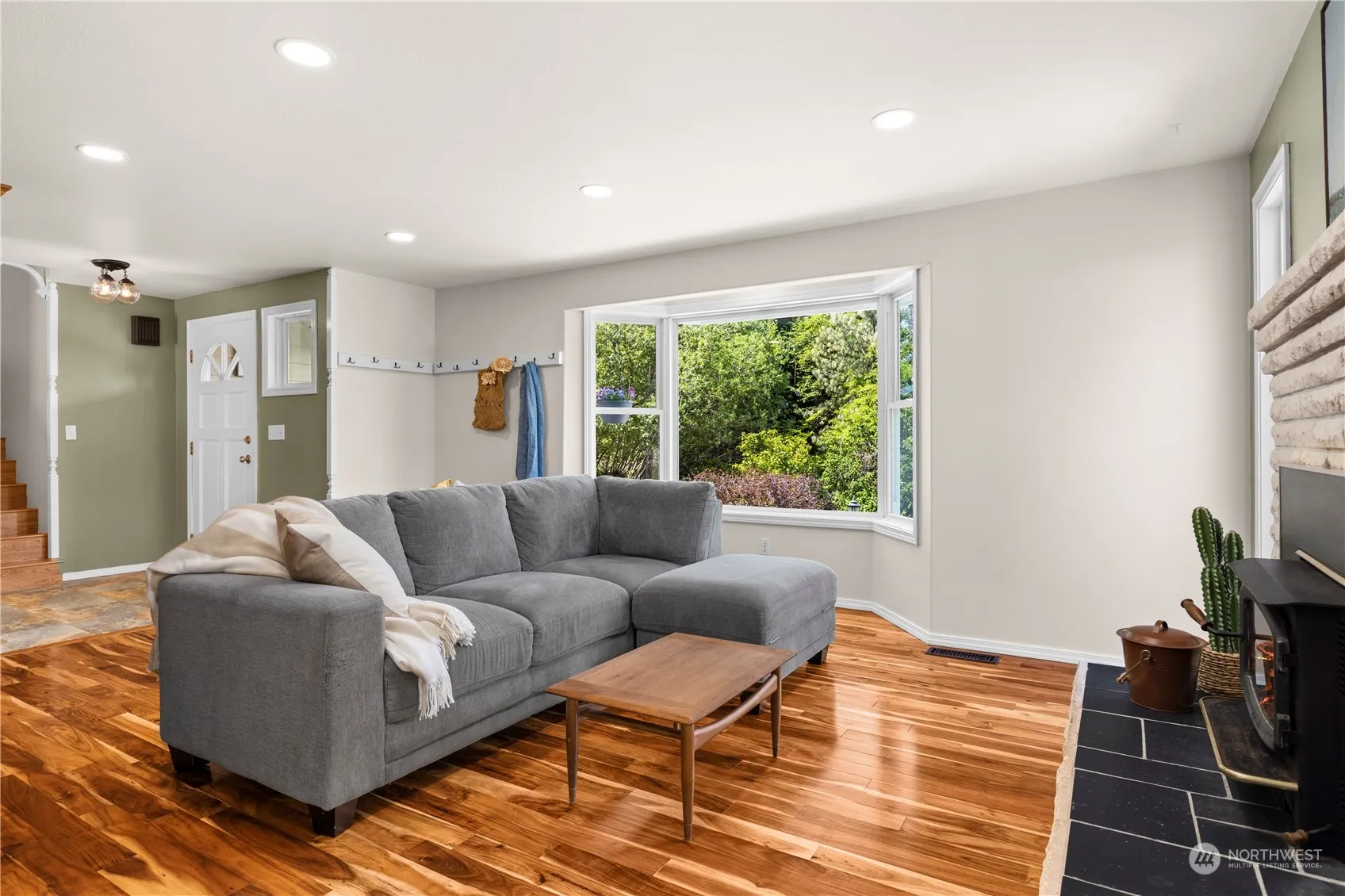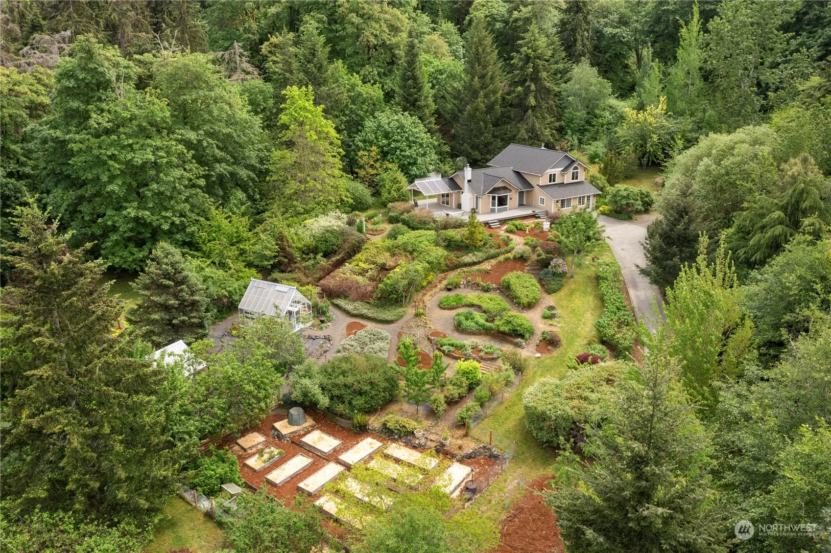 Discover your own island sanctuary on 3 private acres of Vashon’s finest! Whip up culinary delights in the chef’s kitchen complete with Sub-zero fridge, farmhouse sink, & dual convection wall ovens. Recent upgrades include a new roof, A/C, 4th bedroom & office addition & gleaming hardwood floors. Upstairs is a serene primary bedroom, 2 beds & 2 spa-like baths for blissful relaxation. Step onto the wrap-around deck & soak in views of your gardener’s paradise: low-maintenance shrubs, herb gardens, veggie patches, fruit trees, a greenhouse & charming coop complete with chickens. Catch glimpses of the harbor through the trees and explore over half the land, which unfolds into a stunning forest with winding woodland trails & close to the water.