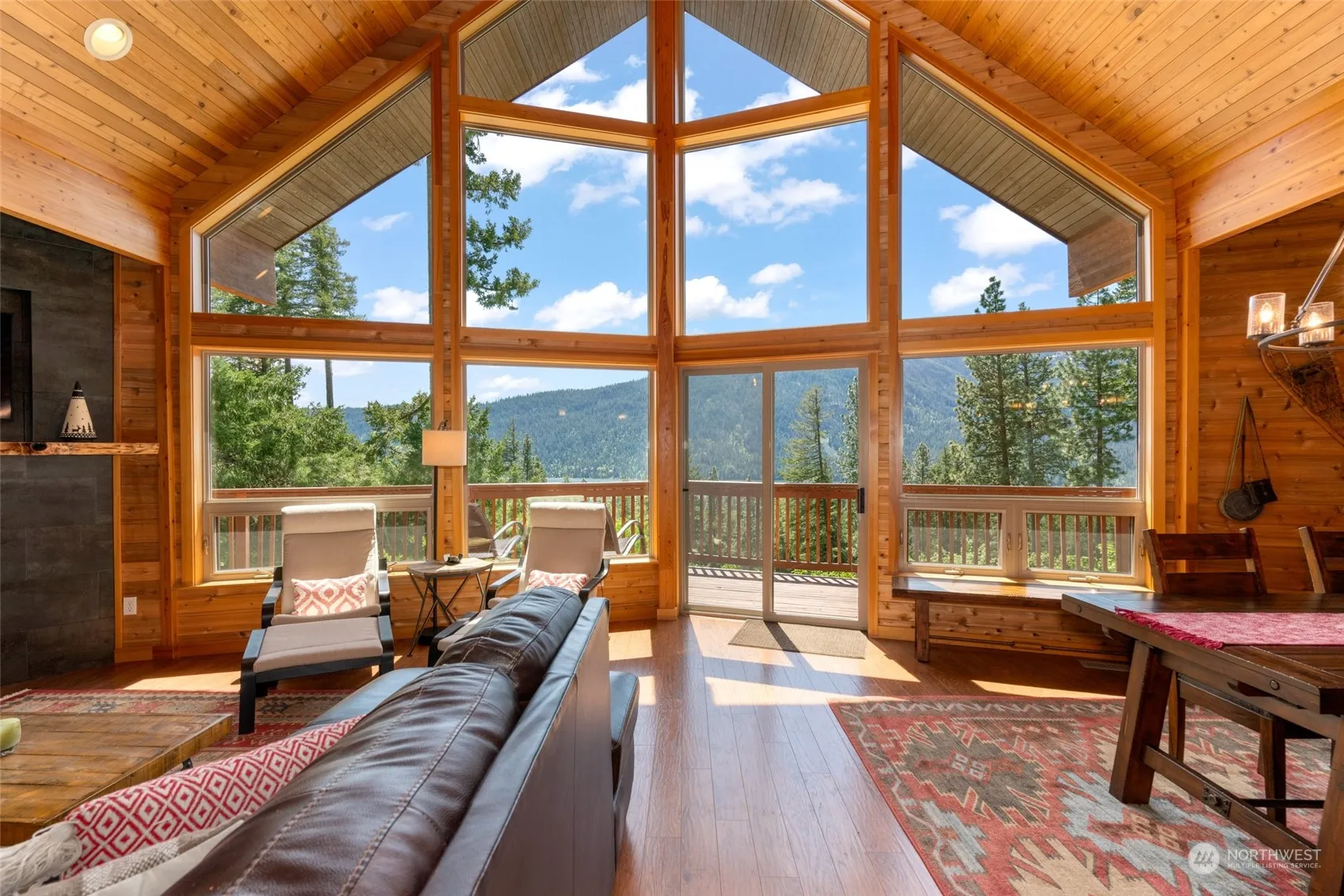 Beautiful home in a private and picturesque setting overlooking Lake Wenatchee! Four bedrooms + bonus room, three baths, an open great room, exquisite kitchen, cathedral ceilings, gas fireplace, and tall windows that maximize the property’s stunning views of the lake and Nason Ridge. Downstairs is a spacious entry, separate mud room, and large rec room. From the main level step outside to a wrap-around deck, and off the lower level there is a nice patio and yard area. The detached garage is perfect for storing recreation toys, even a small boat. 0.97 acres with great year-round access and backs up to the National Forest. Imagine all the memories you’ll create with friends!
