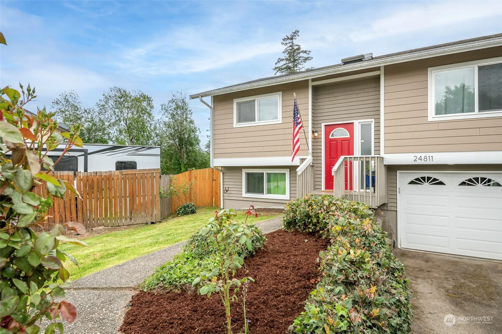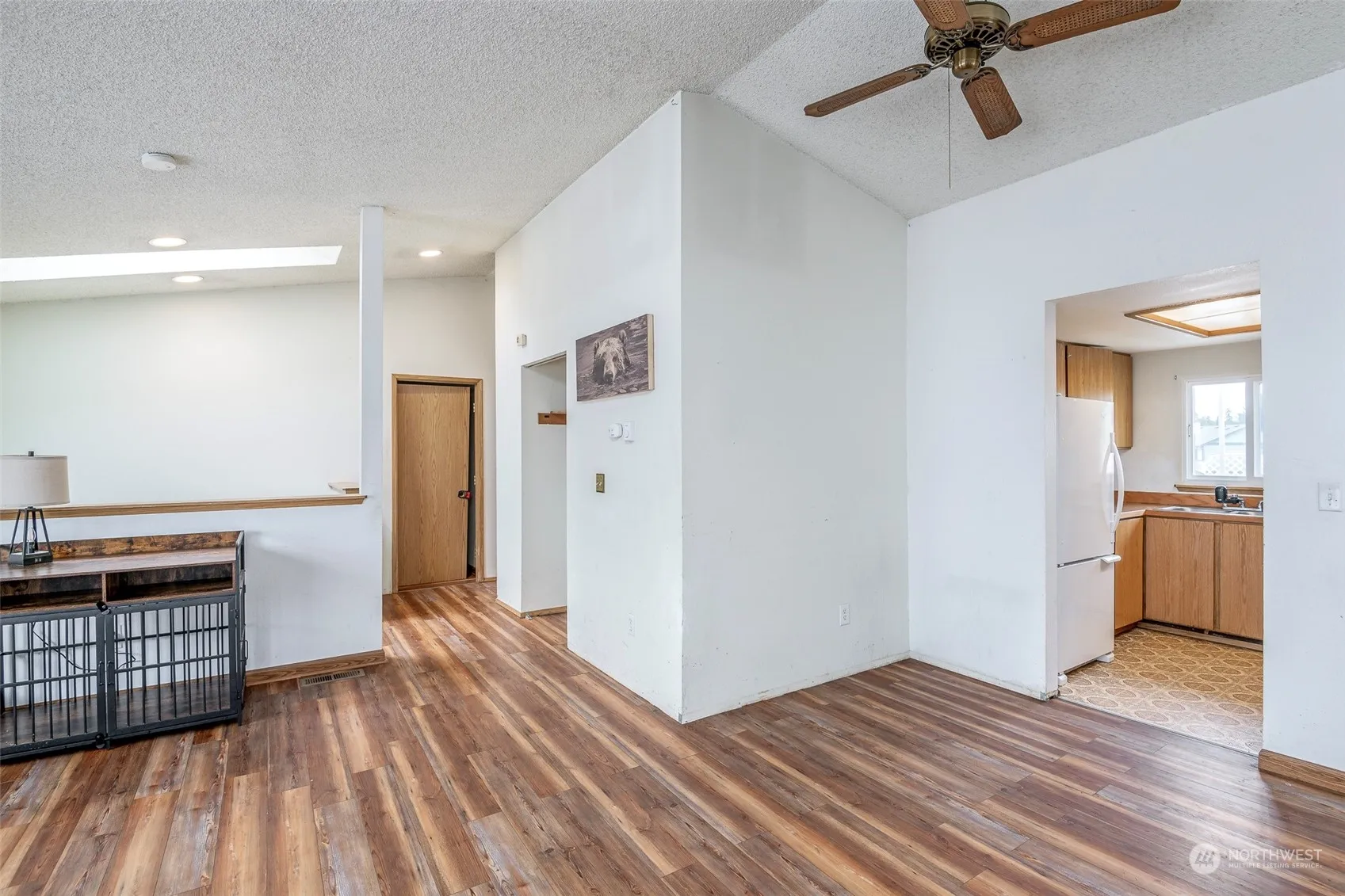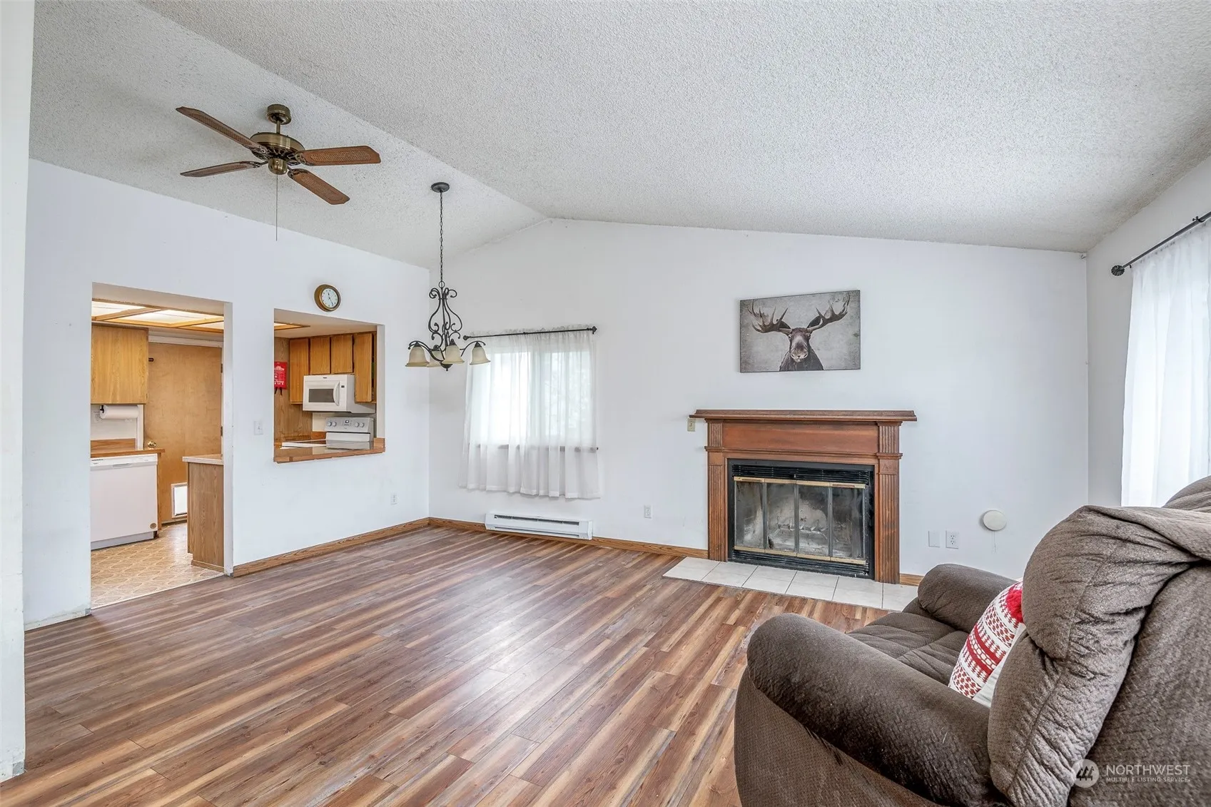 Welcome Home to Des Moines! Split level living with 4 Bedrooms, 2 Bathrooms and Bonus Room are ready for your touches! Tons of natural light, skylight and vaulted ceiling! All appliances stay, newer hot water tank and garbage disposal, updated baseboard heaters, all carpet was replaced with laminate flooring throughout. Wood burning fireplace heats the home right up! Port package triple pane windows, updated siding and garage doors. Nice size deck right off the kitchen to enjoy the green territorial views. Large 2-car garage, giant flat fully fenced backyard and potential for RV parking! All tucked away at the end of a cul-de-sac. Home needs some TLC. Great LOCATION! Minutes to Marina, Highline CC, and Waterfront Parks!