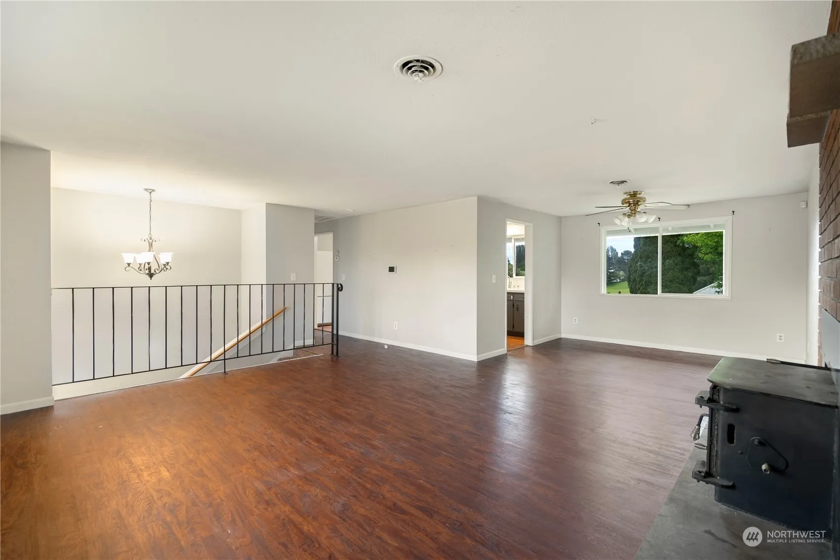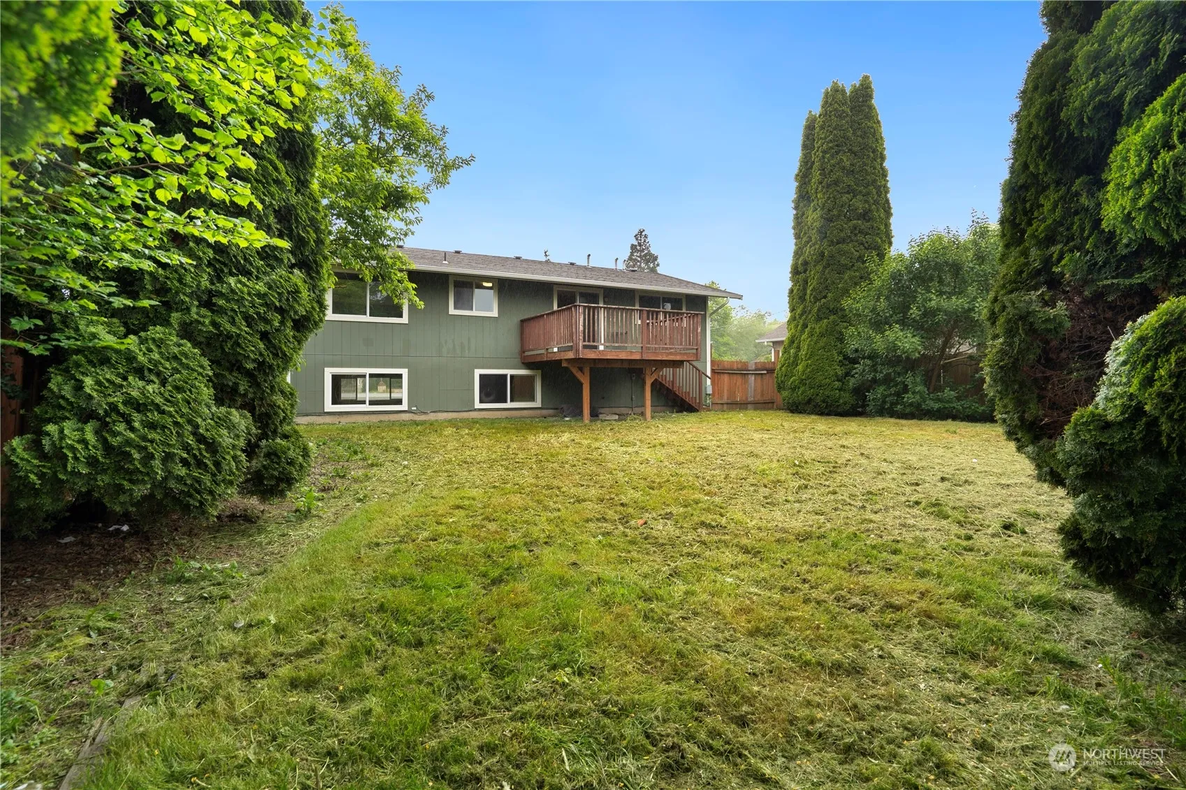 Classic split level 3 bedroom 2 bath home conveniently located near parks, schools, and all the amenities in Burlington, plus easy access to the freeway. Great opportunity to add your personal touch and gain instant sweat equity by doing some cosmetic updating. 2 large living areas both with wood fireplaces. Updated vinyl windows throughout. Nice back deck off of the kitchen overlooking the big, level, fully fenced back yard, with great territorial views to the east. Backing up to neighboring farmland. One car attached garage, plus some extra parking on the side of the house. This home is ready for new owners, and priced to sell!