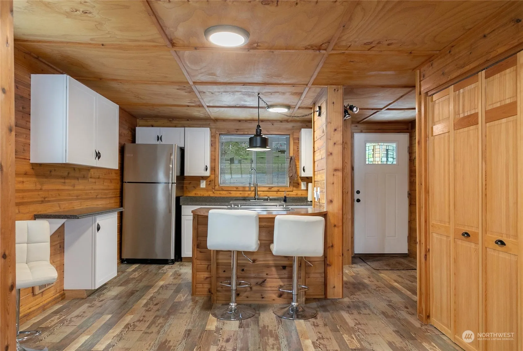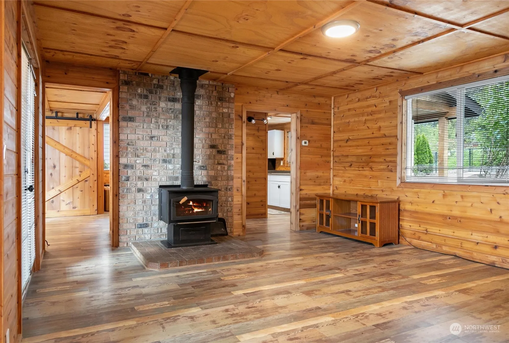 The perfect getaway, in this totally remodeled home with 76 feet of waterfront on Trails End Lake. The home features newer cedar siding, doors and windows. You have french doors in the living room and primary bedroom both leading out to your private decks. Two out buildings one is located up front and one on the waters edge. This is a must see waterfront home.