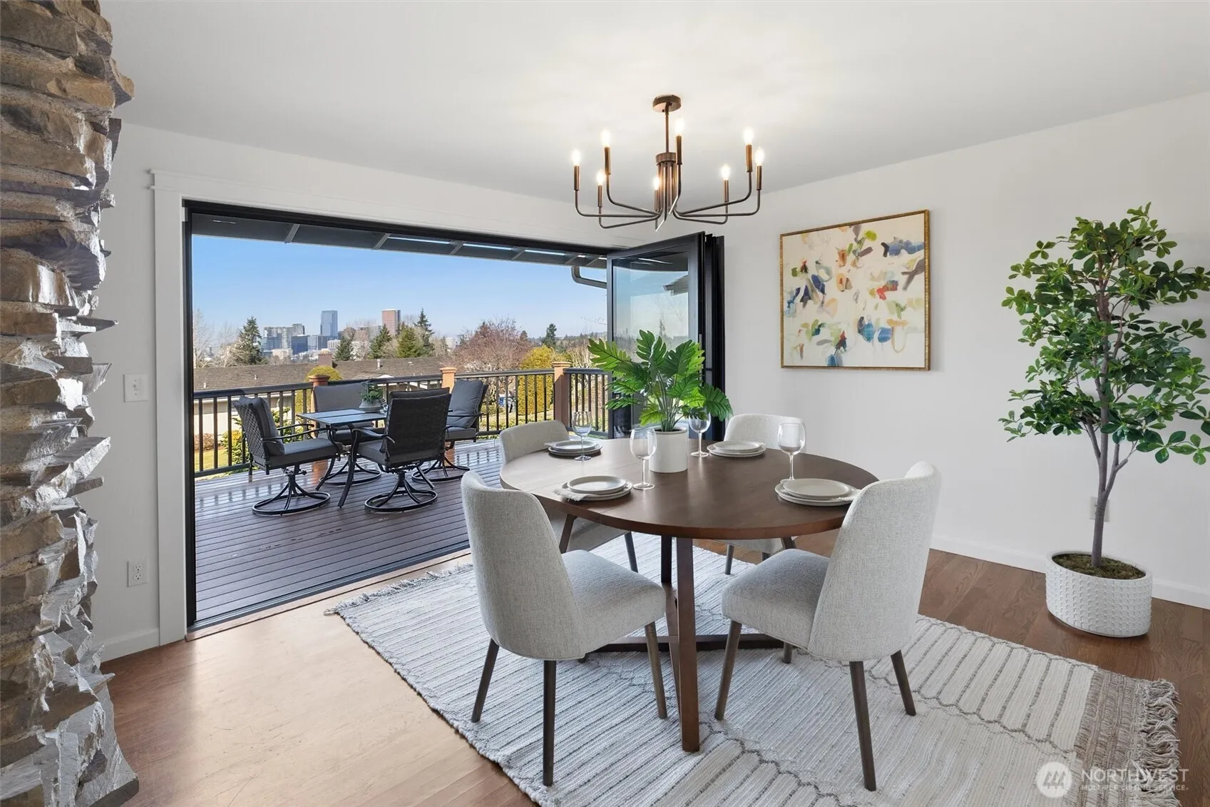 Welcome home to this beautifully updated Woodridge residence with lifestyle, location, and views you’ll love. From your upgraded Panno door and expansive Trex deck, enjoy sweeping vistas of downtown Bellevue and the Seattle skyline—perfect for morning coffee or sunset evenings. At 3,830 sq ft, this spacious 4-bed, 2.75-bath home features an oversized primary suite with walk-in closet and elevated bath, plus heated bathroom floors and A/C added in 2022. Fresh carpet and paint throughout, mature landscaping, and thoughtful upgrades make this home move-in ready. Fully inspected with sewer scope for peace of mind. Woodridge is one of Bellevue’s most desirable neighborhoods with top-rated Bellevue schools and Woodridge Elementary right at the heart of the community. Enjoy a true community feel with two membership pools, basketball, pickleball and tennis courts, and wonderful parks. Easy access to I-90 and I-405 means you’re roughly 10 minutes to Downtown Bellevue and about 15 minutes to Seattle for work or weekend adventures. A special opportunity in a location that truly delivers.