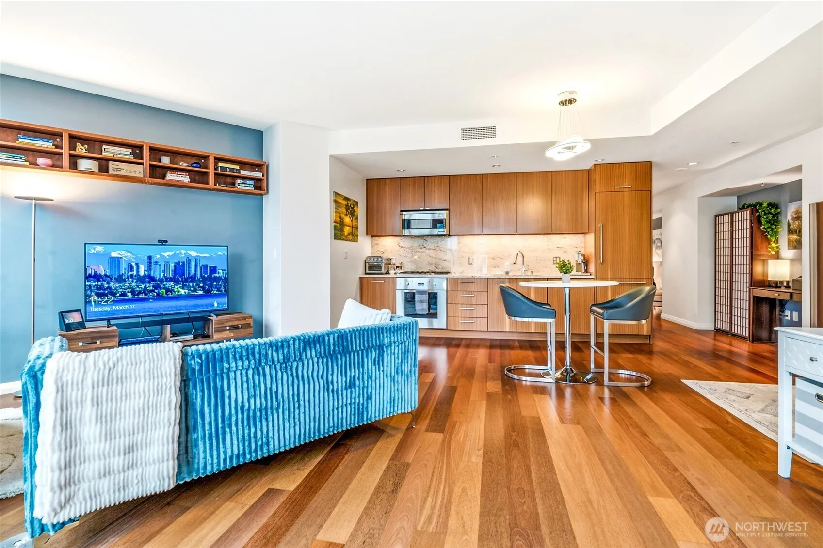 Modern condo with Garden View in the heart of Bellevue. This unit boasts open floor plan, expansive windows, city skylines, and plenty of natural light. The gourmet kitchen features top tier appliances, granite counters, and custom cabinetry. Centrally located yet offering a quiet and private retreat, this home is the perfect blend of comfort and convenience. Walk to everything: Amazon, downtown park, restaurants and shopping. Assigned parking in a secure garage. Newly remodeled amenities include spa, 2 gyms, concierge, theater, & 1/2 acre garden. Voted Best Condo of the PNW in 2025. City living at its finest.