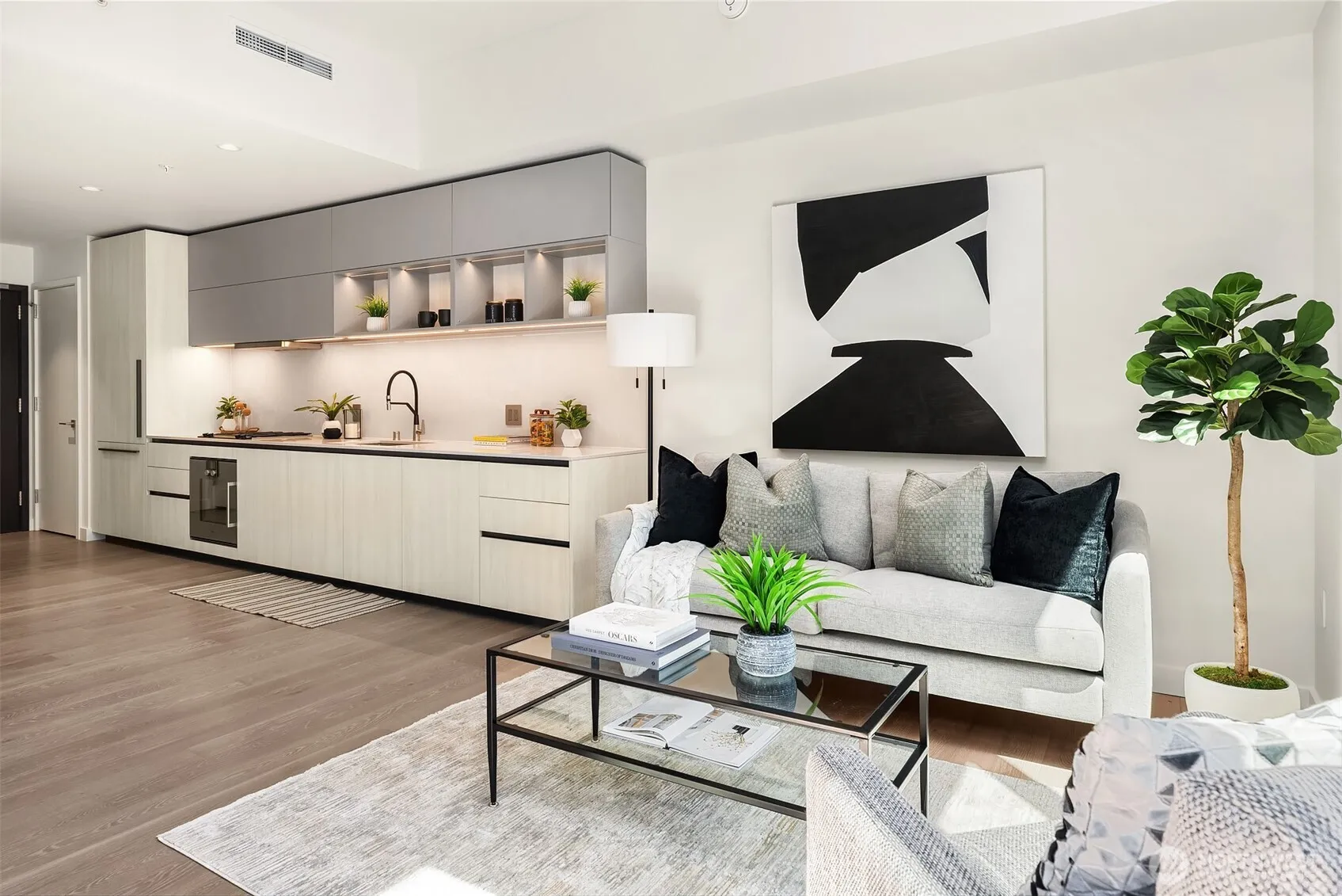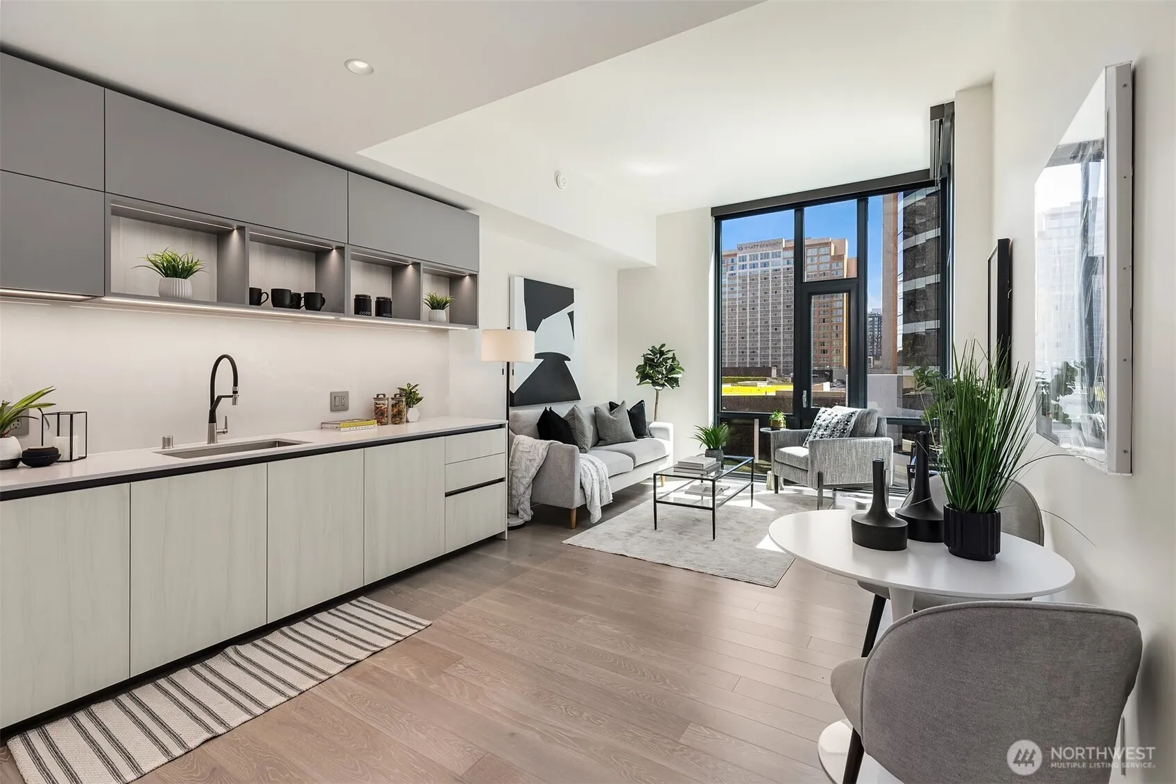 Discover your new luxury condo at Ave Residence in Bellevue. This elegant residence features a comfortable living space w/floor to ceiling windows illuminated by fresh lighting & opens to a private balcony with stunning city views. Find a great chef’s kitchen, lots of storage, custom hardwood floors extend throughout and a private balcony overlooking the plaza. Retreat to the spacious bedroom which connects to the main balcony & the spa-like bathroom w/oversized shower, custom lighting and oversized vanity. Enjoy resort-style amenities such as a cutting-edge fitness facility, spacious lounges, on-site concierge, room service and valet parking. Live the 5-star life in the heart of Downtown Bellevue next to the new InterContinental Hotel.