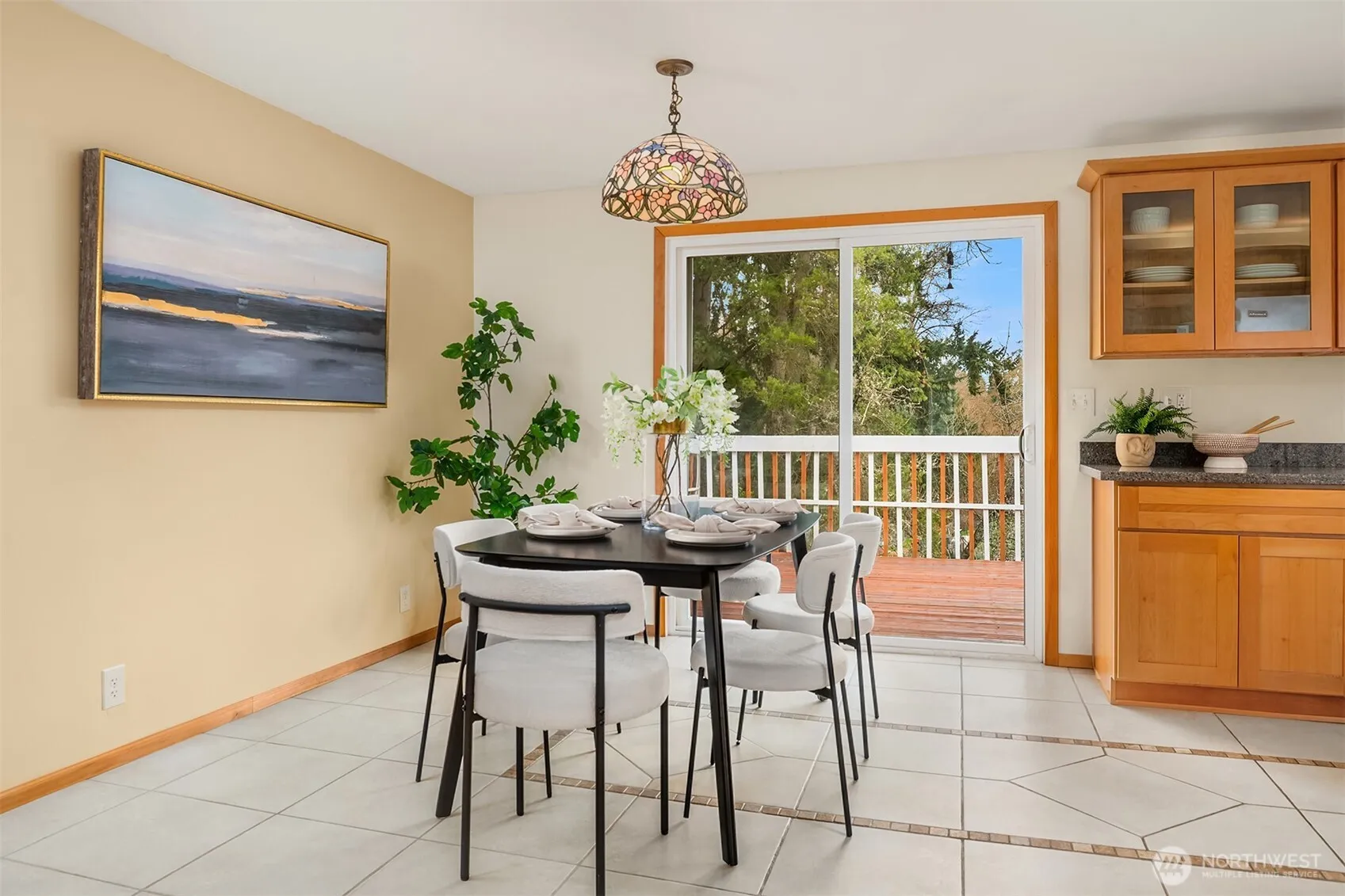 This 5-bedroom home is tucked away on a quiet dead-end street in Bellevue’s sought-after Lake Hills neighborhood. Upon entering, walls of windows flood the home with natural light, creating bright, welcoming spaces throughout. The open-concept main level features a spacious living room with a cozy wood-burning fireplace, perfect for relaxing or gathering with friends. The beautifully remodeled kitchen showcases custom Craftsman cabinetry and stainless steel appliances, and it flows seamlessly into the dining area, where a sliding door opens onto an oversized deck overlooking lush gardens and the Bellevue Urban Garden (tBUG). Three generously sized bedrooms and an updated full bath complete the upper level. The lower level offers flexibility, featuring an oversized bonus room with a sliding door that opens onto a large patio, ready for your summer BBQs and outdoor entertaining. A laundry room, two large bedrooms (ideal for guests or a home office), and another beautifully updated full bathroom finish off this level. Outside, the grounds feel like a natural retreat, with abundant flowering plants and a charming garden shed tucked away in a private setting. Additional highlights include a low-maintenance metal shake roof and a new energy-efficient furnace. Ideally located just minutes to 405, Bellevue Square Mall, a variety of dining options and walk to Lake Hills Greenbelt trails. The home is also served by award-winning Bellevue schools.
