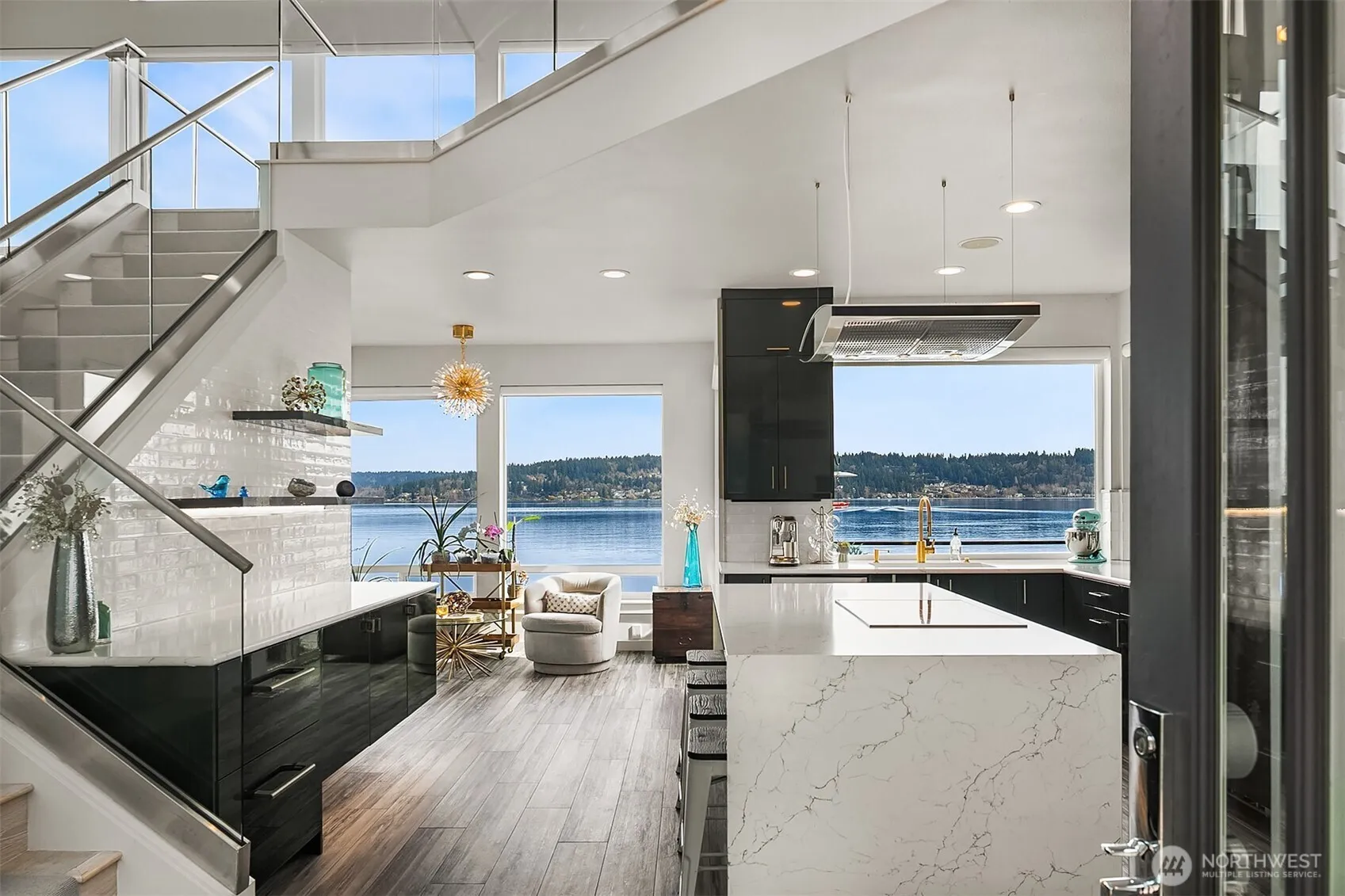 A rare offering on approximately 80 feet of coveted Lake Sammamish shoreline, this fully reimagined waterfront residence pairs refined design with seamless indoor-outdoor living and sweeping lake and mountain views from nearly every principal room. Set at the water’s edge, walls of glass frame the landscape and draw in natural light, while expansive living and entertaining spaces open effortlessly to terraces and the shoreline beyond. At the heart of the home, a chef’s kitchen anchors the main level with generous scale, thoughtful detailing, and effortless functionality. The primary suite is a private retreat with its own view balcony, heated floors in the bath, and an oversized dressing room with dedicated washer and dryer. On the walk-out waterfront level, secondary bedrooms open directly to an expansive deck designed for entertaining, with a spa, custom tiki bar, koi pond, and private dock with an 8,000-pound boat lift. A fully integrated smart-home system controls automated shades, whole-home, outdoor, and dock audio, security, climate, smart entry, and garage access, while generator backup adds year-round comfort and peace of mind. Private, turnkey, and exceptionally rare, this distinguished Lake Sammamish waterfront offering is designed for effortless entertaining, easy boating, and an intimate connection to the water in every season.
