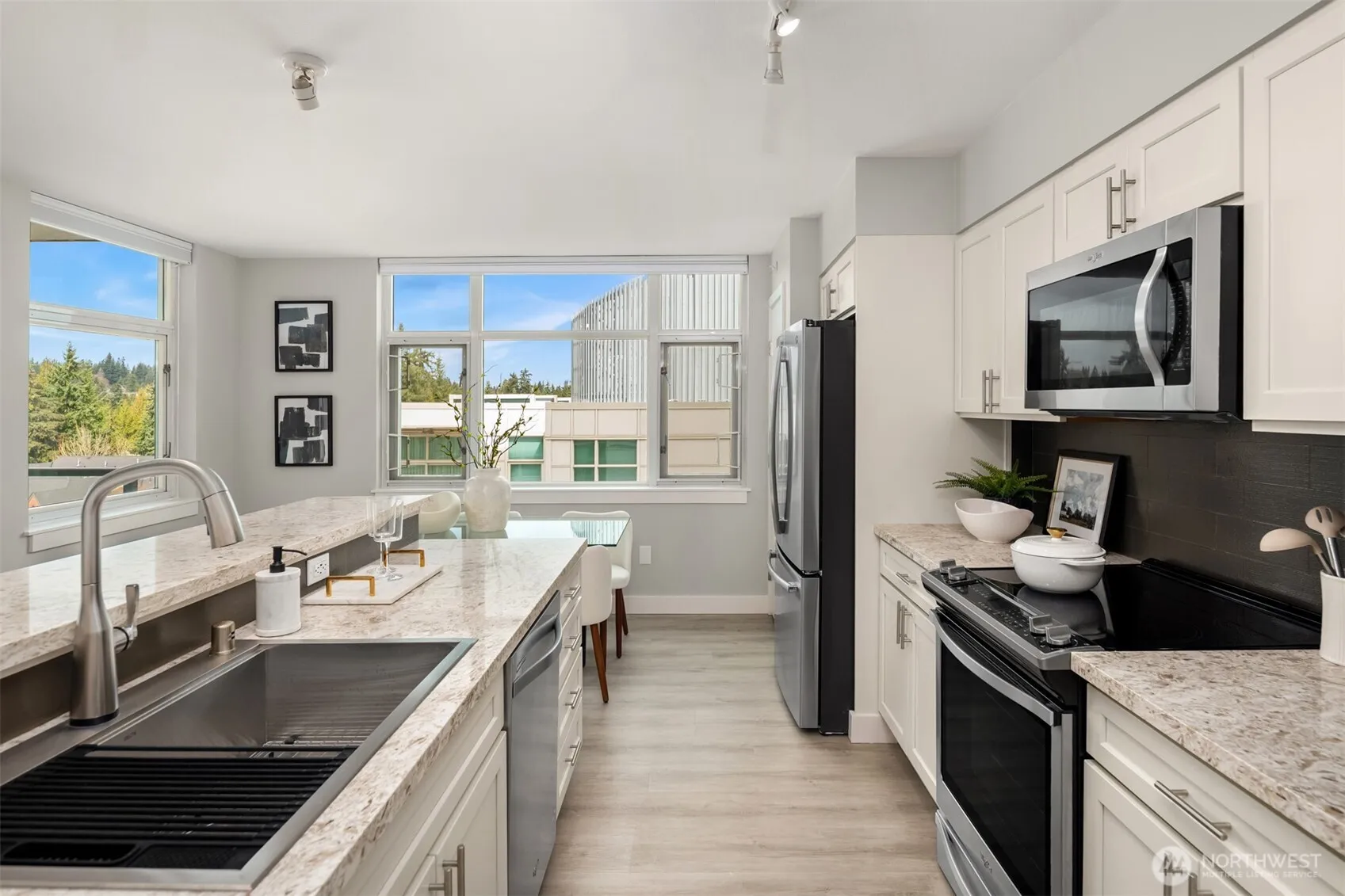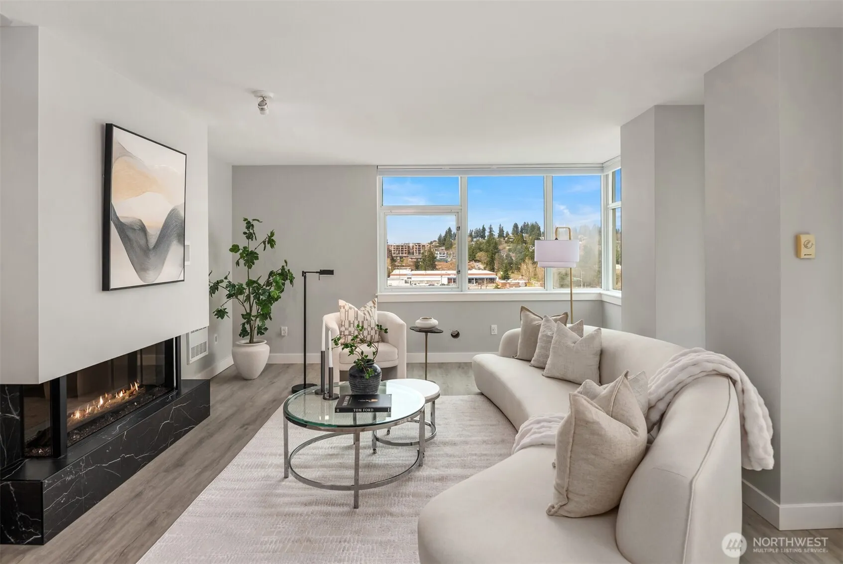 [Luxury Downtown Bellevue Living] Experience refined corner-unit living at The Palazzo, where sunset views and an unbeatable location come together. This beautifully updated 2-bedroom, 1.75-bath (2 parking spots – 2 balconies) residence offers a light-filled, open layout with expansive windows and a spacious living area anchored by a cozy fireplace. Designed for both comfort and lifestyle, the home features two private balconies—one off the living area and breakfast nook with west-facing sunset and northern territorial views, and a second off the primary suite, perfect for unwinding at the end of the day. The kitchen is equipped with stainless steel appliances, granite countertops, and a breakfast bar, seamlessly connecting to the dining space and living room. Don’t forget the brand new automatic blinds throughout the home. The primary bedroom is a true retreat, showcasing a wall of windows, city views, balcony access, and a fully renovated ensuite bath, while the second bathroom has also been tastefully updated. Additional highlights include in-unit laundry and two secured, spacious side-by-side parking spaces—a rare and highly desirable offering in downtown Bellevue. Palazzo amenities include concierge service, fitness center, rec room with full kitchen, guest suite, and conference room, all just moments from parks, shopping, dining, the library, and light rail. No rental cap!