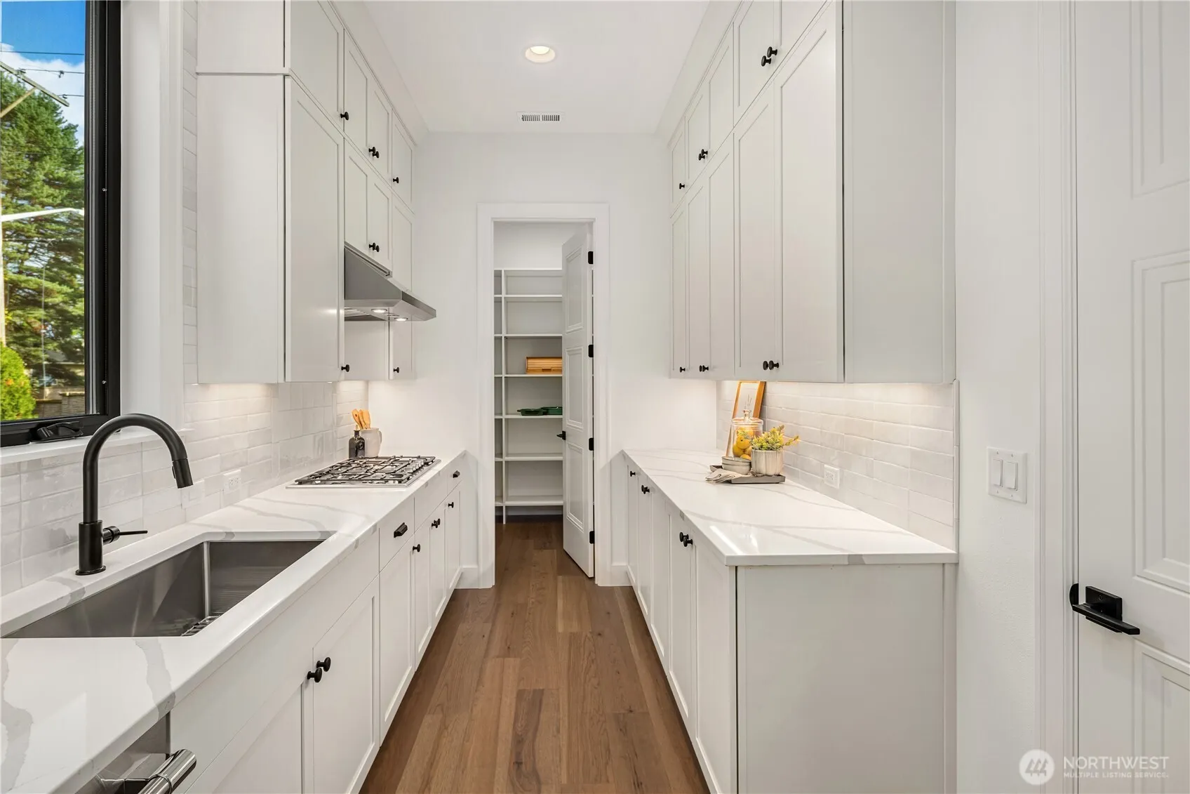 The sought-after Whitteville plan by luxury builder Murray Franklyn, ideally situated in the Glendale neighborhood of central Bellevue. This gated residence offers privacy and sophistication. Boasting 5 bedrooms, 5.5 bathrooms, and 5,174 square feet of living space, the home sits on a 18,202-square-foot lot with a generous yard. Enjoy an unbeatable location just six minutes from Downtown Bellevue, with easy I-90 and I-405 access. The open-concept floor plan showcases a spectacular kitchen that flows into the dining and family rooms—creating an inviting atmosphere for gatherings large and small. The kitchen is appointed with stainless steel appliances, an oversized center island, and a dedicated prep kitchen. Rich hardwood floors extend throughout the home. The main level features a private guest suite complete with en suite bath and walk-in closet, along with a den and versatile flex room—ideal for a second home office. Step outside to the covered patio, where a fireplace and overhead heaters provide year-round comfort for outdoor living and entertaining. Upstairs, the luxurious primary suite serves as a serene retreat, offering a spa-inspired five-piece bath and a spacious walk-in closet. Three additional bedrooms—each with its own en suite bath—ensure comfort and privacy for all. A study loft, recreation room, and generously sized laundry room complete the upper level. An oversized three-car, side-by-side garage provides ample space for vehicles. $50,000 Buyer Credit!