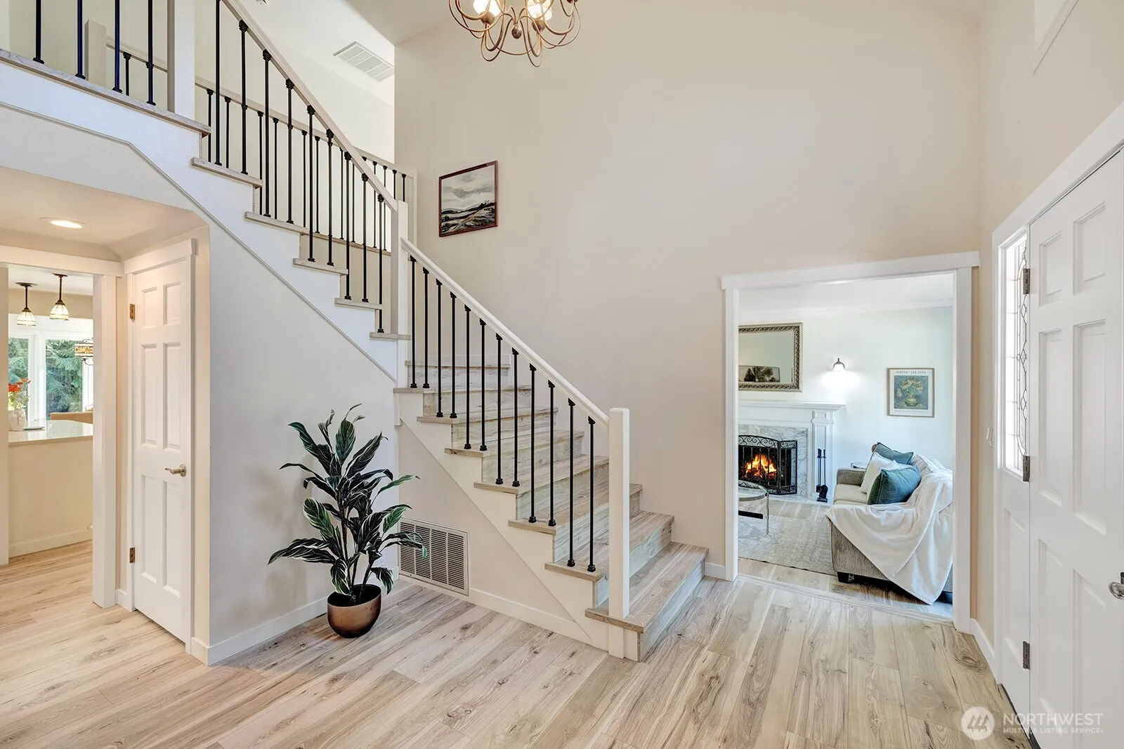 Behind private gates in the serene Brook Trails Estates neighborhood, this exceptional estate blends luxury living with extraordinary amenities. Light-filled formal spaces and a beautifully remodeled interior create an elegant backdrop for everyday comfort. The gourmet kitchen flows to a warm family room and out to an expansive entertaining deck, complemented by a private sauna and dedicated spa bathroom. The remodeled primary suite offers a refined retreat, while additional bedrooms provide flexibility for guests or office use. A separate staircase leads to an impressive executive office and a fully equipped, acoustically isolated home theatre featuring a laser projector, screen, Dolby Atmos 7.2.1 system, and wet bar—true luxury for movie lovers. For collectors and hobbyists, the property offers a rare 7-car garage capacity across two insulated buildings, including an RV-height door, car lift, air-tool lines, gym and storage loft. Two gated driveways provide private access to each garage. Recent upgrades include a new premium roof, new flooring, European tilt-and-turn windows, modern HVAC, water heater, and mini-splits for garages and theatre. Neighborhood trails connect directly to the scenic Tolt Pipeline Trail, and the home is served by the top-rated Northshore School District. Property is located outside of the RTA (a tax district) to save you money on tax & car registration taxes. A rare offering where privacy, luxury, and unmatched garage amenities come together.