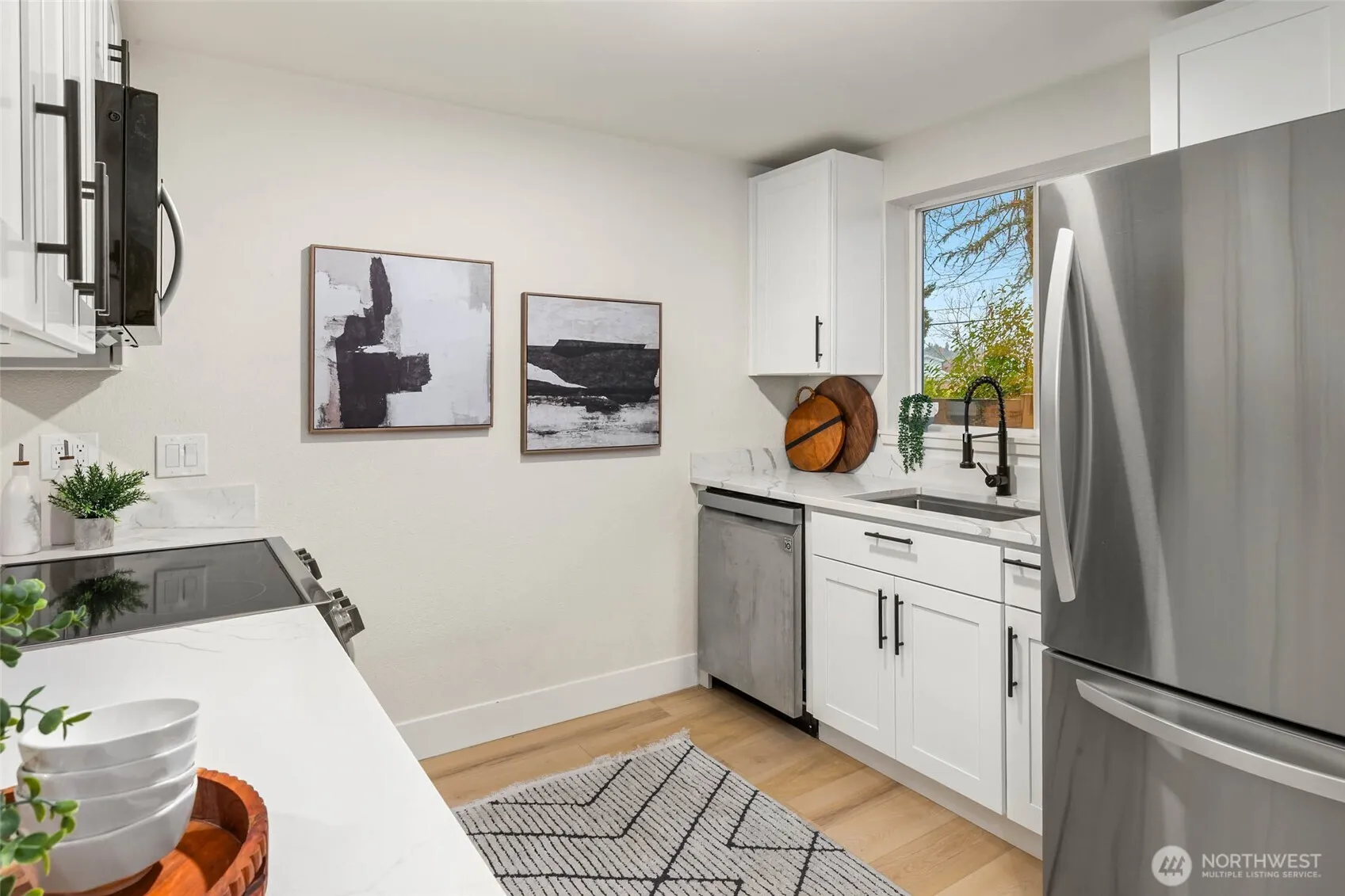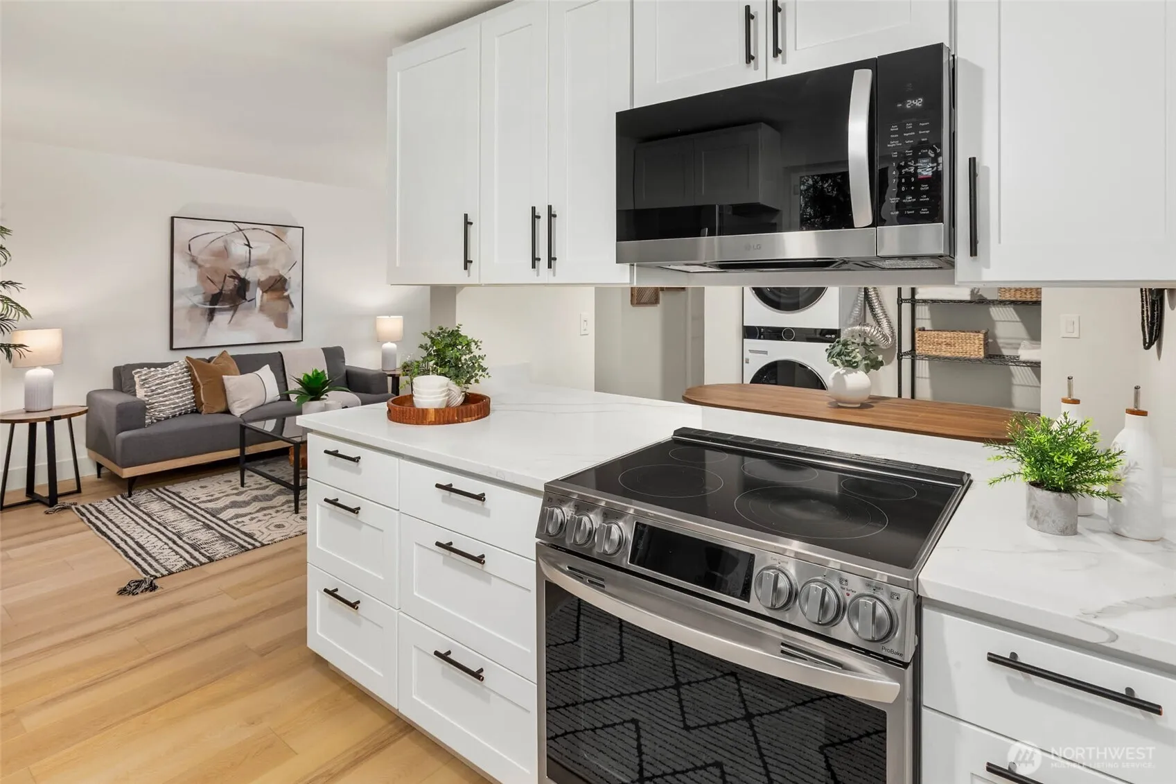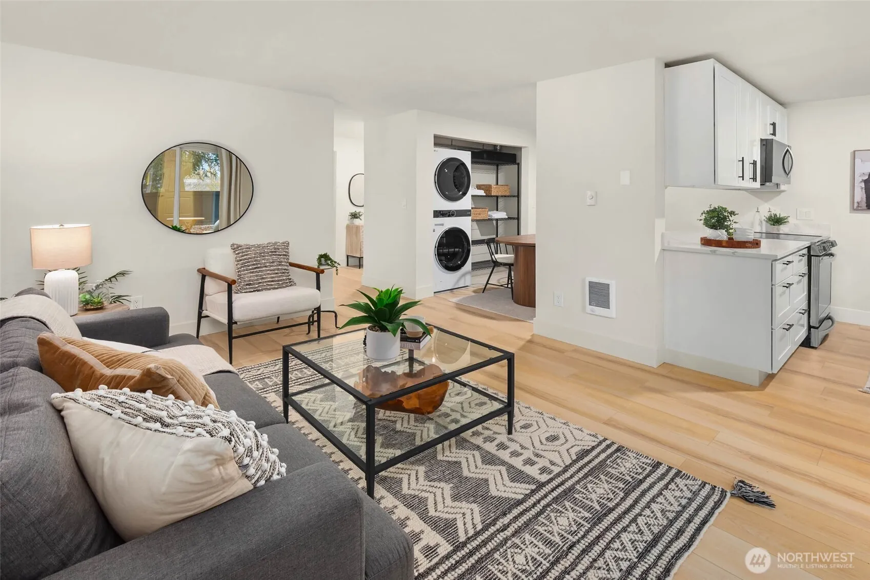 Impeccably remodeled and move-in ready, this stylish Timber Ridge condo blends modern comfort with Woodinville’s vibrant lifestyle. Every surface has been renewed: new flooring, paint, kitchen, bath, and appliances including washer/dryer. The sleek, modern kitchen with quartz counters, new cabinets, and stainless appliances opens to bright living and dining spaces. The spa-inspired bath and spacious bedroom w/new custom closet elevates comfort. Enjoy a private patio, large pantry, and outdoor storage. Resort-style amenities: clubhouse cabana, gym, sauna, and outdoor pool. Dedicated parking space directly in front. Across from shops and dining, near wineries, and easy access to bus routes and freeway entrances. FHA approved, pets welcome!