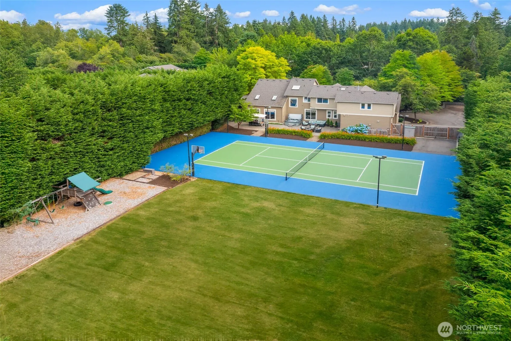 Tucked in coveted Hawthorne Estates, this storybook home is the ultimate backdrop for memory-making. Resurfaced sport court w/lights and hoops, hydrangea-lined patio, hot tub, and playhouse create a backyard built for celebrations. Inside, soaring ceilings and travertine entry give way to refinished maple hardwoods, fresh paint, and new carpet throughout. Large, open kitchen and butler’s pantry are ideal for entertaining, while formal living and dining shine during holidays. Upstairs, a luxe primary retreat offers 5-piece bath and generous walk-in closet. Spacious bonus room w/adjoining bedrooms offer perfect work/play/sleep. Tree-lined drive, 3-car garage, and private cul-de-sac. Enjoy top-rated schools and premier Woodinville lifestyle.