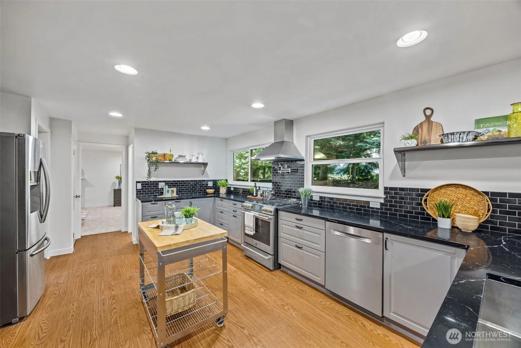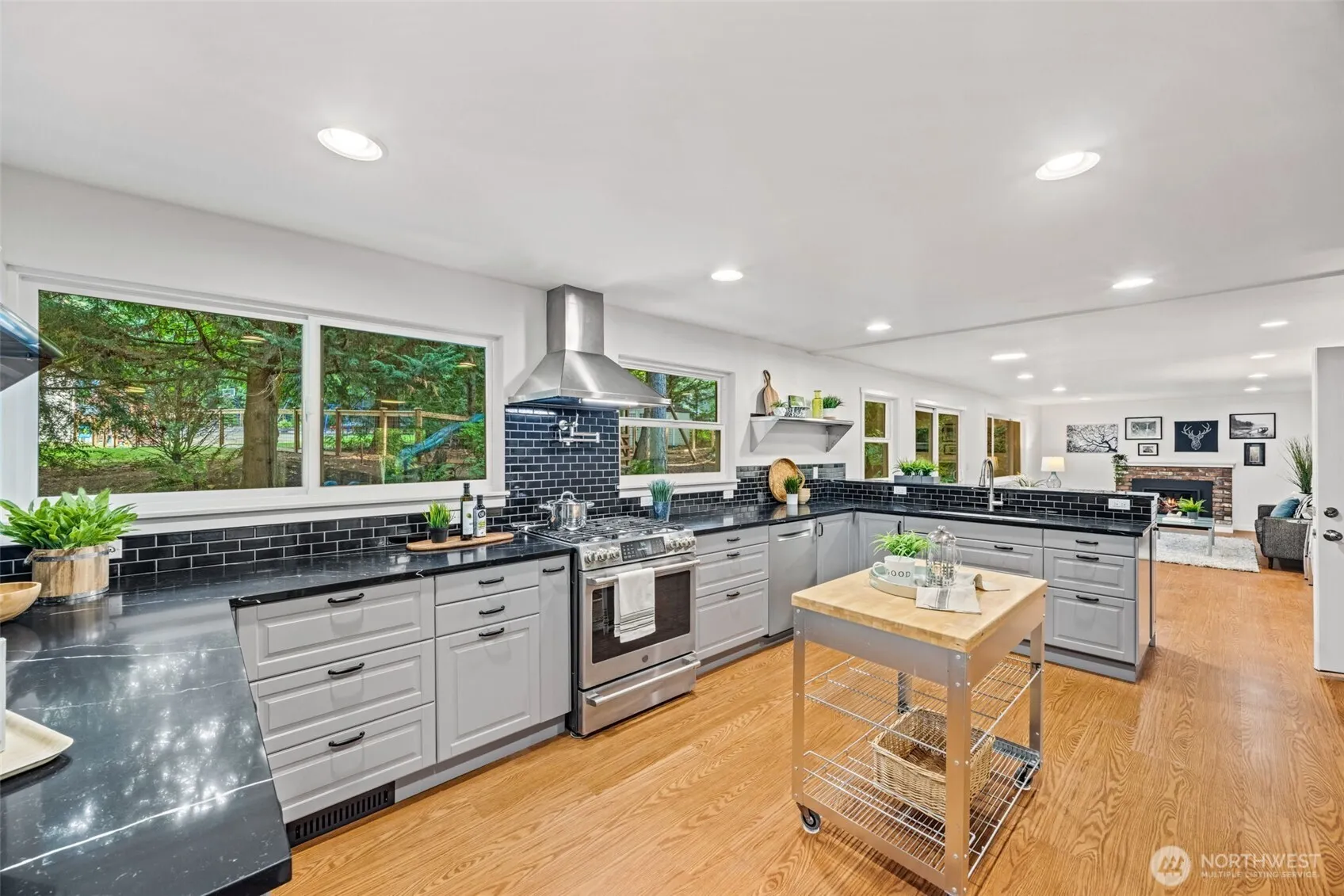 Sophistication & serenity at this exquisite private wooded retreat offer room to relax in nature. Visions of loving dreams shine in this spacious home meticulously designed with no expense spared. Find fantastic flow in a traditional floor plan designed for entertaining & easy living. The heart of the home- a fully renovated dream kitchen is equipped with an oversized gas stove, double ovens & miles of quartz counters. The incredible outdoors include a covered front porch, bbq deck, patio, play structure, fire pit, gardens & trails to explore all surrounded by lush, forested picturesque park-like grounds. Convenience is an oversized 2 car garage with EV hookups, RV/boat & extra parking on over ¾ acre in the sought-after Northshore Schools.