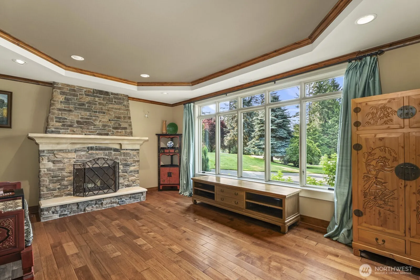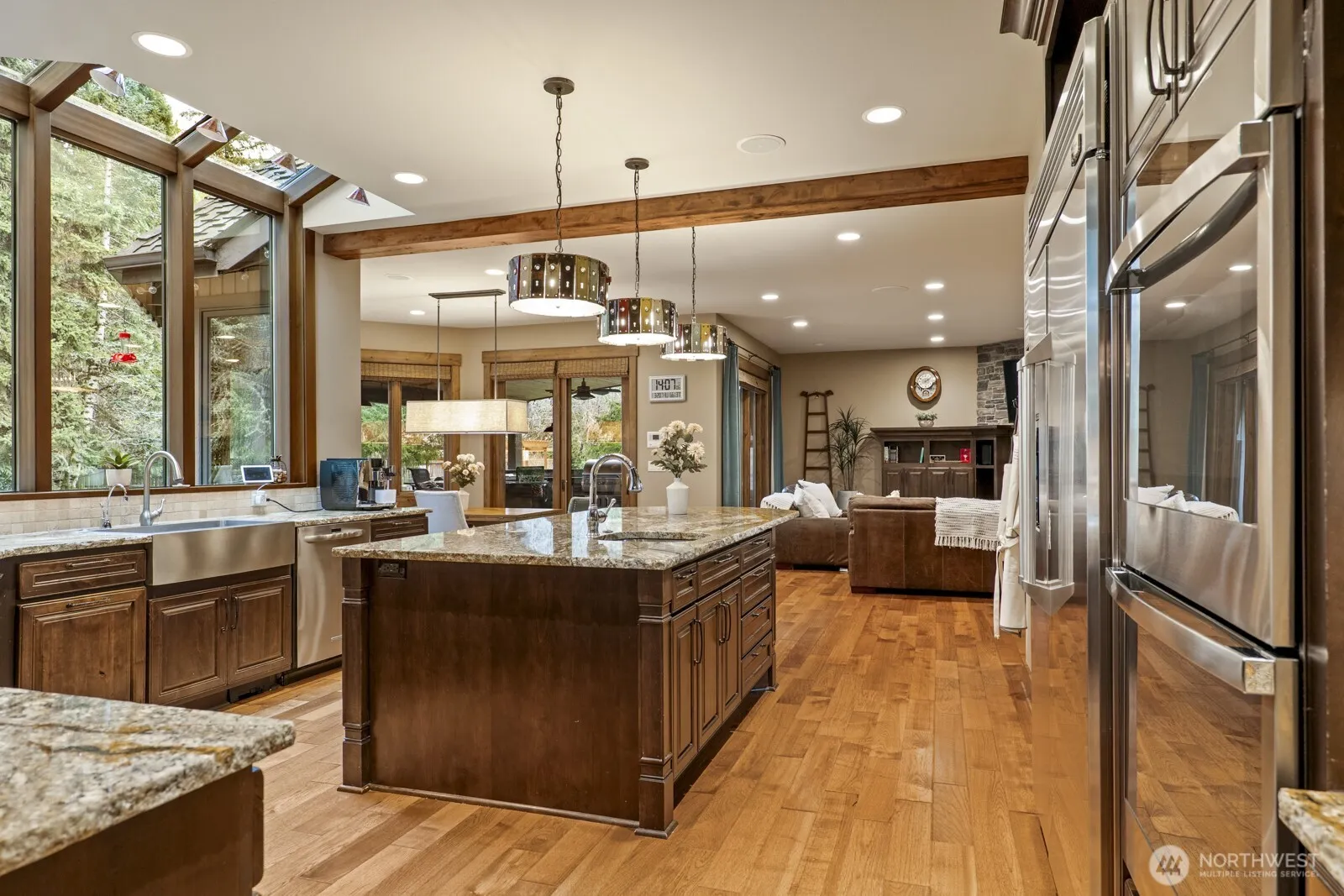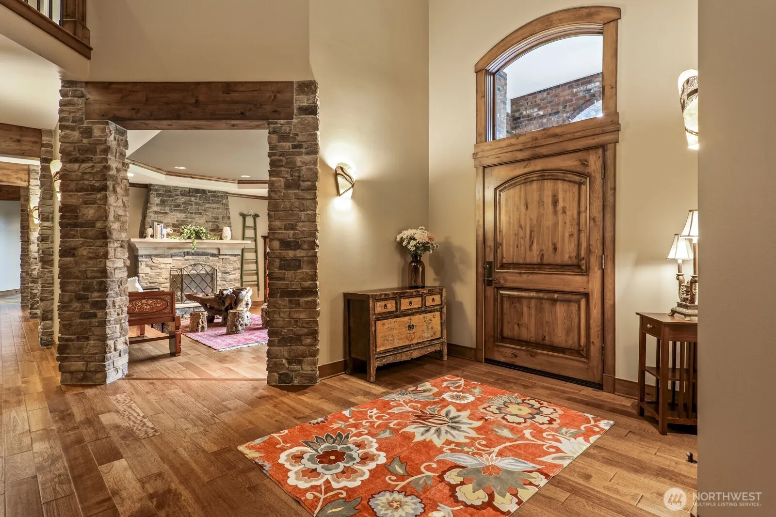Captivating Lake of the Woods Estate with fabulous floor plan for todays active lifestyle to enjoy entertaining at home. An enchanting 5770* sf of stone, slate, knotty alder & exposed timber beamed ceilings offering a main floor entertaining wing w/a billiard rm, media rm, dining rm w/slate inlaid floor, multiple sets of doors to the awesome covered outdoor kitchen w/granite fire bar, overhead heaters for year round use & relaxation lounge. Proff’l kitchen w/Wolf appliances, live edge slab granite, espresso stained distressed wood cabinetry. Upstairs-4 large en-suite bdrms. Bonus w/slab stone work table. Fenced 1.3 acres w/waterfall, covered hot tub, raised beds, AC, generator, Sonos sound sys, 2 laundry rms & Huge RV garage!