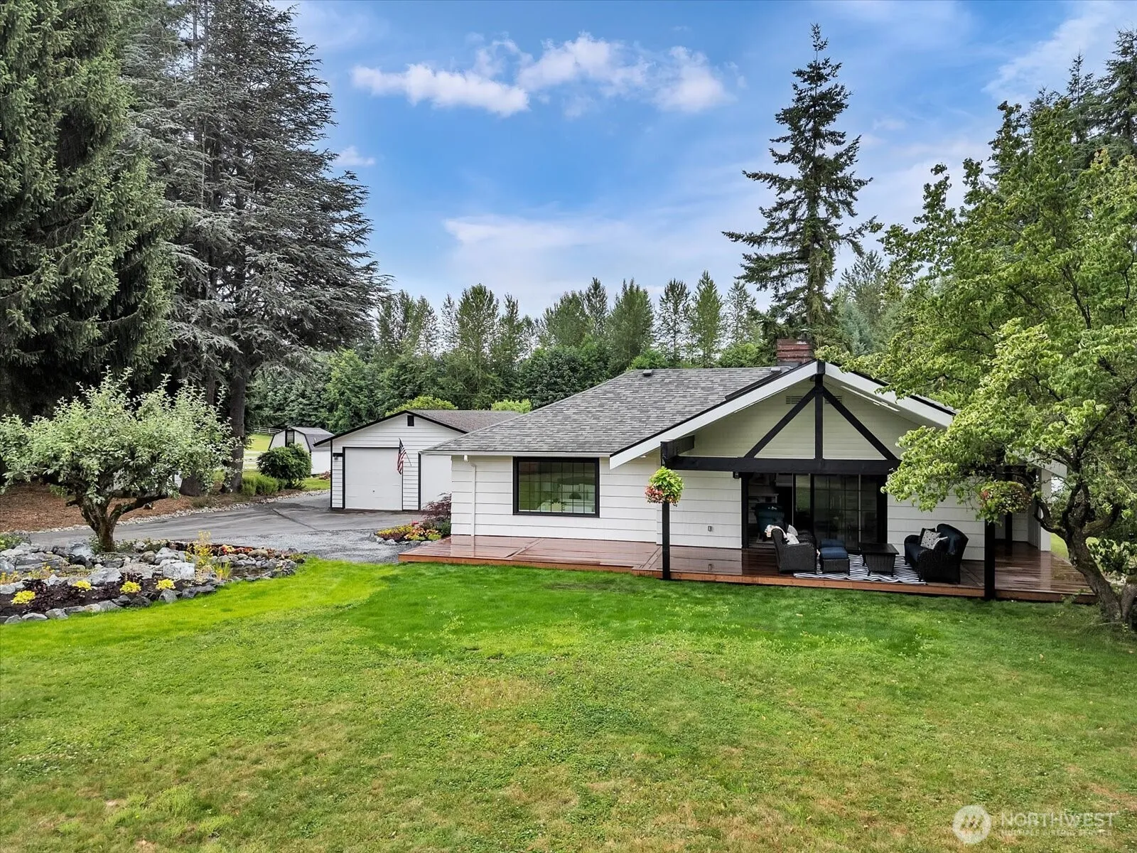 Beautifully renovated farmhouse in Woodinville, set on 2.25 picturesque acres. You’ll be greeted by a stunning water feature and a spacious covered porch. 3 beds & 2 baths, showcasing high-end finishes throughout. Kitchen is a culinary delight, retro appliances, granite countertops, & subway tile. The bathrooms are impressive, featuring a clawfoot tub, tile floors, a tile shower, and elegant quartz vanity tops. Every detail of this freshly renovated dream home has been thoughtfully designed. Ample outdoor space barn & stalls, three pasture areas and various outbuildings. Experience the tranquility of country living yet just minutes away from Costco, Hwy 9, 405 & Woodinville. Located in the highly sought-after Northshore School District.