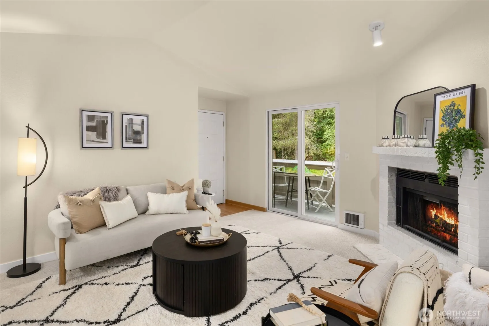 Welcome to this spacious top-floor condo in the heart of Woodinville. This inviting home features brand new carpet and luxury vinyl tile, a cozy wood-burning fireplace, and a smart layout with 2 bedrooms and 2 bathrooms on opposite sides for added privacy. Includes in-unit laundry, ample closet space, and assigned parking. Enjoy community amenities: outdoor pool, hot tub, gym, sport court, and clubhouse. Walk to shopping, dining, parks, and the Park & Ride. Explore over 130 wineries, breweries, and distilleries, plus seasonal events and farm-to-table restaurants that make Woodinville famous. Pet-friendly, no rental cap, and located in the award-winning Northshore School District. A perfect blend of comfort, location, and lifestyle.
