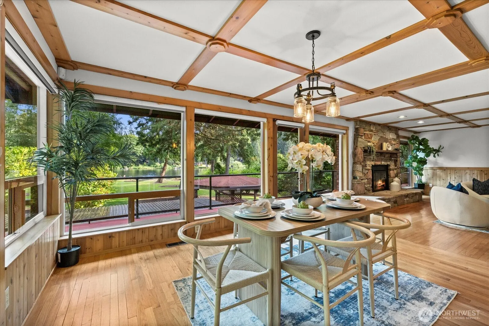 Experience waterfront living on the coveted shores of Lake Leota. Set on 1.97 acres, the 3,500 SF, 3-bed, 2.5-bath daylight rambler features panoramic views, floor-to-ceiling windows, expansive wraparound deck, 2 fireplaces & lower level with bar- offering seamless indoor-outdoor living. Enjoy 136 feet of lakefront w/ a floating dock & gazebo, perfect for paddleboarding or kayaking. 1,150 SF, 2-bed, 2-bath ADU, ideal for rental income/guests. 6-car heated shop with RV parking is a dream for car enthusiasts or hobbyists. Year-round comfort with A/C & whole-home automatic generators. New roof, gutters & fresh paint inside & out. Meticulously maintained landscaping surrounds this Woodinville retreat in the desirable Northshore School District.