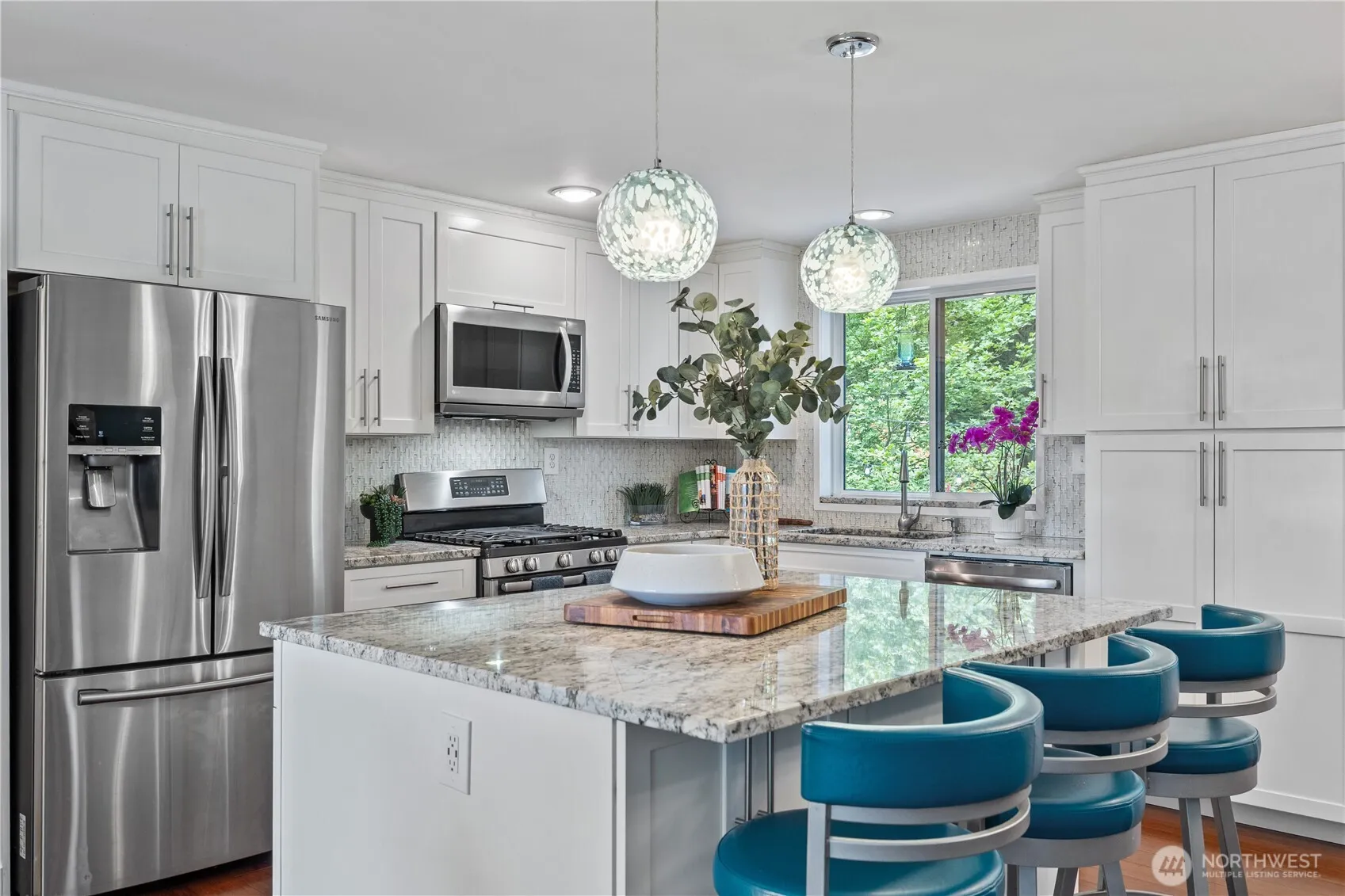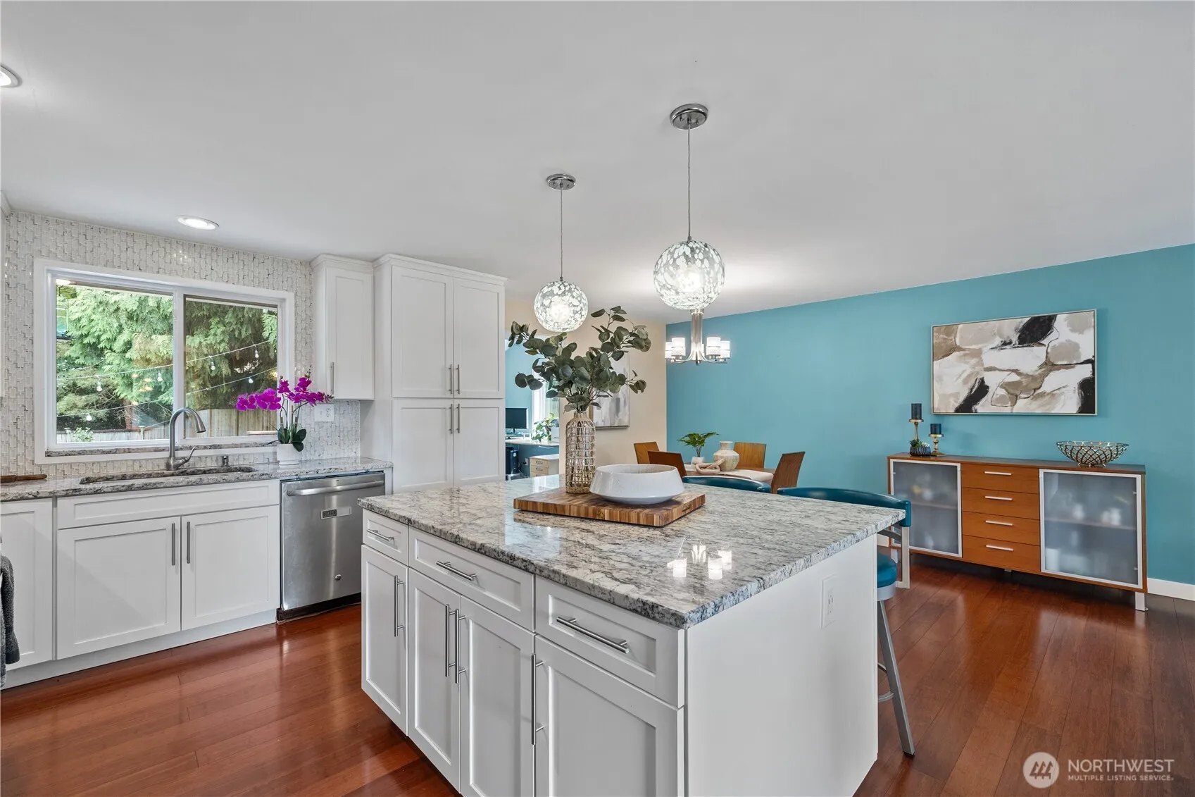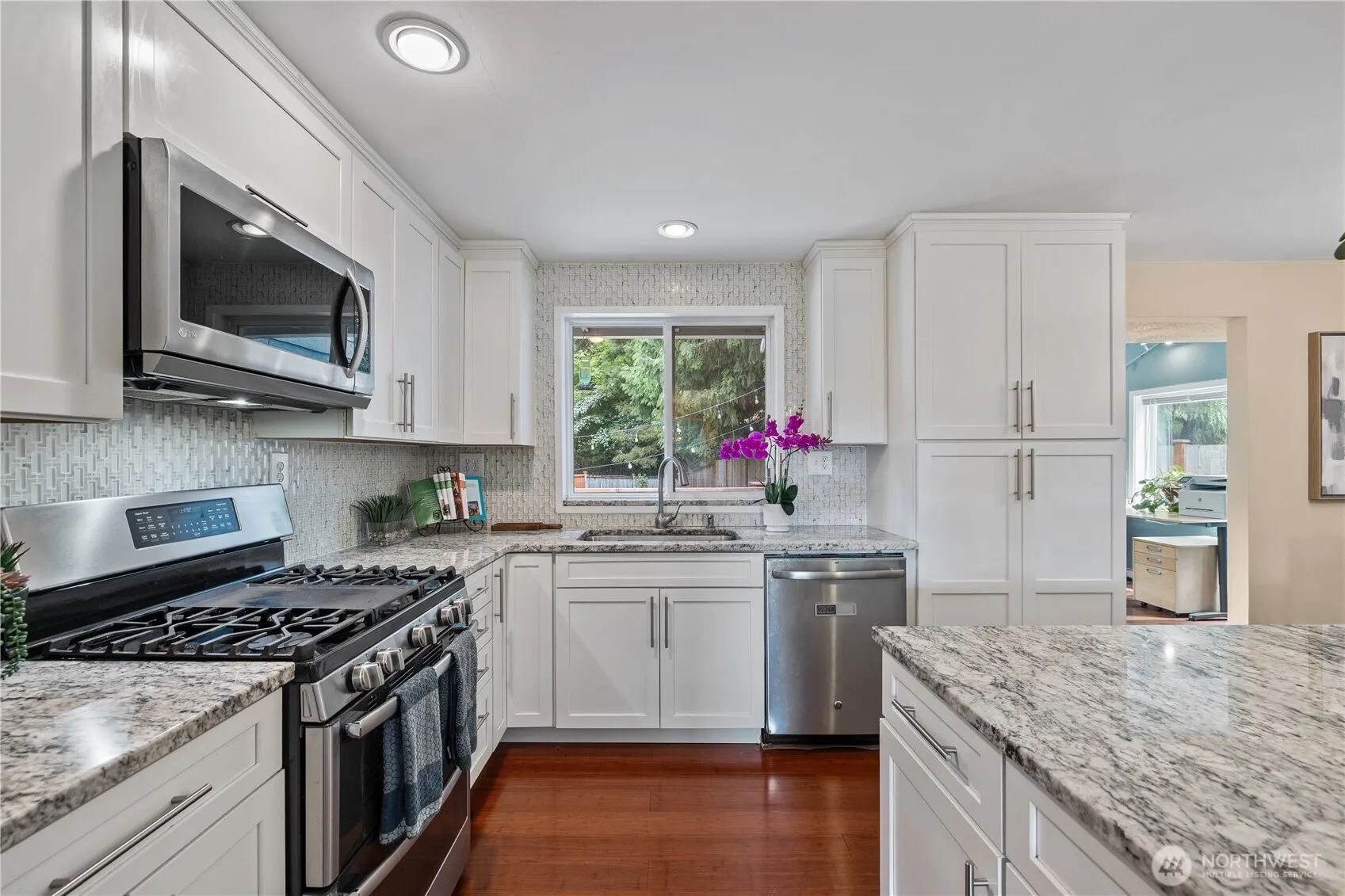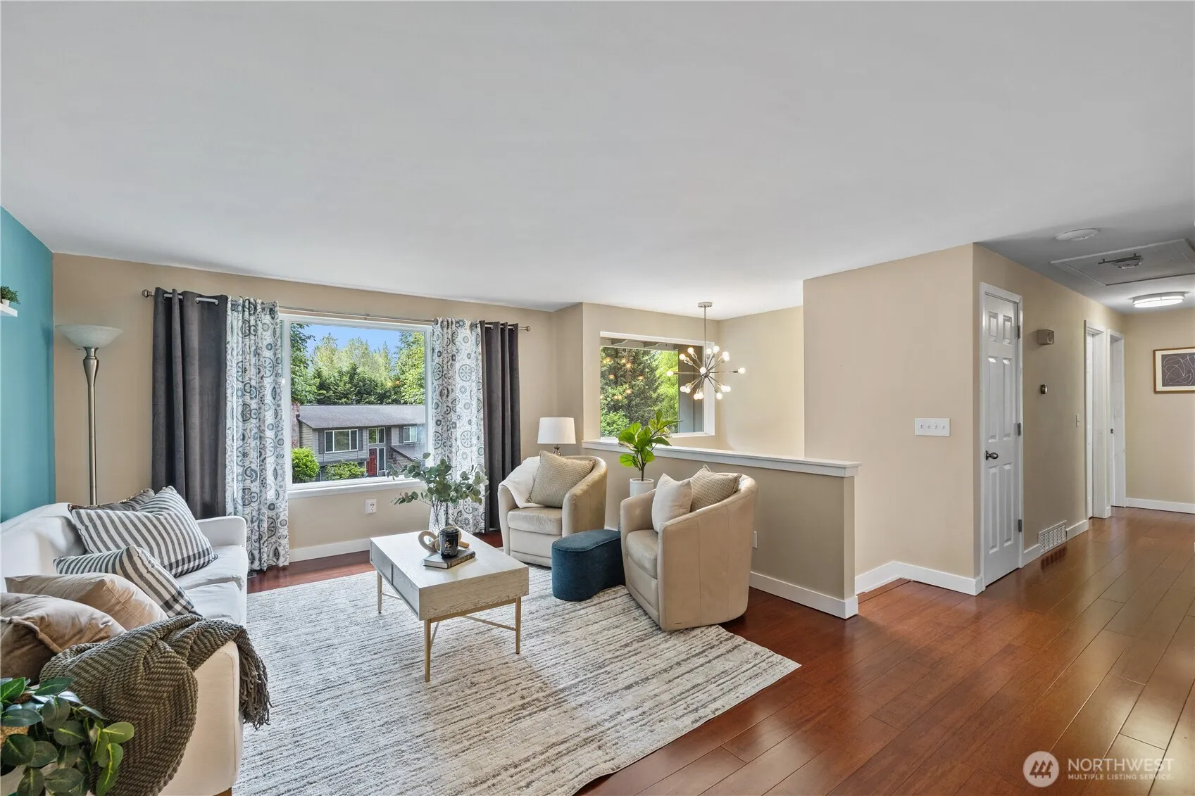 Welcome to this Cottage Lake home with an open layout perfect for entertaining. The updated kitchen shines with stainless steel appliances, granite island, and ample space. A light-filled office with separate entrance sits just off the dining area. Hardwood floors run throughout, and the primary suite includes a private bath. Downstairs offers a family room plus a versatile flex space. Enjoy A/C indoors or relax on the expansive deck overlooking a beautifully landscaped yard w/irrigation. The oversized garage provides abundant storage. Home has newer septic system and EV charging Located in the sought-after Northshore School District with easy highway access.