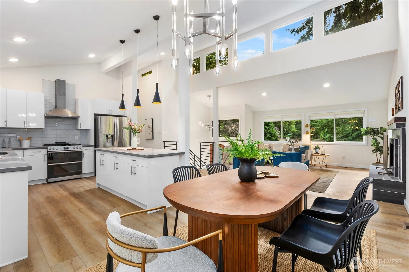 Tucked into the trees on a lush ¾-acre lot, this Northwest-modern home is located in Reintree, one of Woodinville’s most desirable neighborhoods with large lots, mature trees, and a quiet, welcoming feel just minutes from town. Striking architecture with vaulted ceilings, walls of windows, and clean lines sets the tone for an open, light-filled floorplan that connects seamlessly to the outdoors. Generous living spaces feel warm and inviting throughout. Thoughtful upgrades include a brand new roof, A/C, upgraded appliances, solid-core shaker doors, Elfa custom closets, smart lighting, new LVP and carpet throughout, and fresh paint. Just minutes to Cottage Lake Park and nearby amenities. Pre-inspected, in tip-top shape, and truly a must-see!