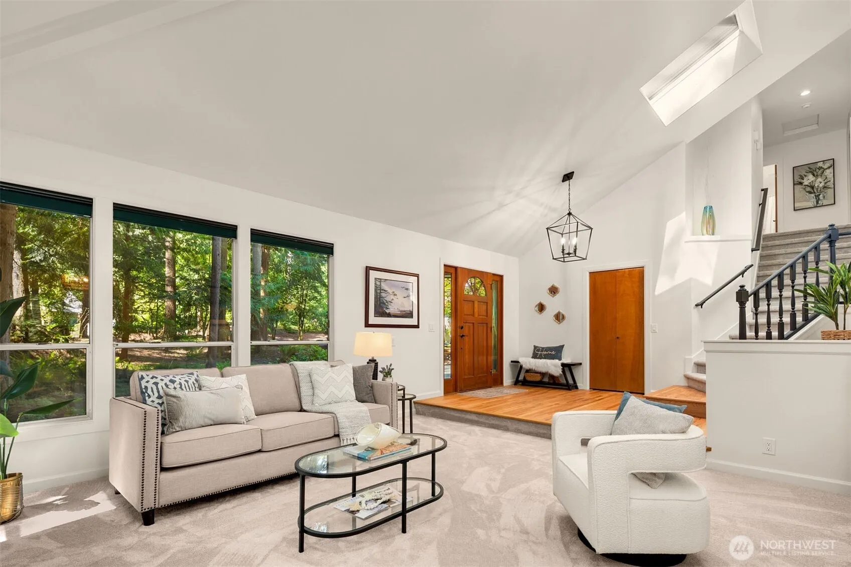 Reintree ~ 4 Bed, 2,628 +/- ASF Cathedral-Ceiling Jewel Box! Stunning & Extensive Professional Upgrades. Move right in and enjoy your gorgeously upgraded interiors and private, natural .84 ac with an easy care Trex Deck + Flagstone Patio. 2024 Upgrades: Kitchen, All Baths, Appliances, Cabinets, Flooring, Interior Paint, Counters, Fixtures, Lighting. 2023 Electrical Panel, EV Charger & Heat Pump. Primary suite with large sitting area. Smartly paired 4th bedroom next to .75 bath offers the perfect guest suite or work-from-home/gym space! Huge 3-Car Garage, Air Conditioning, 2 Cozy Gas Fireplaces, 50-year-rated Presidential Roof, mere mins. to shopping, freeways, Microsoft, Bellevue. Stellar Northshore SD, Pre-Inspected. Welcome Home!