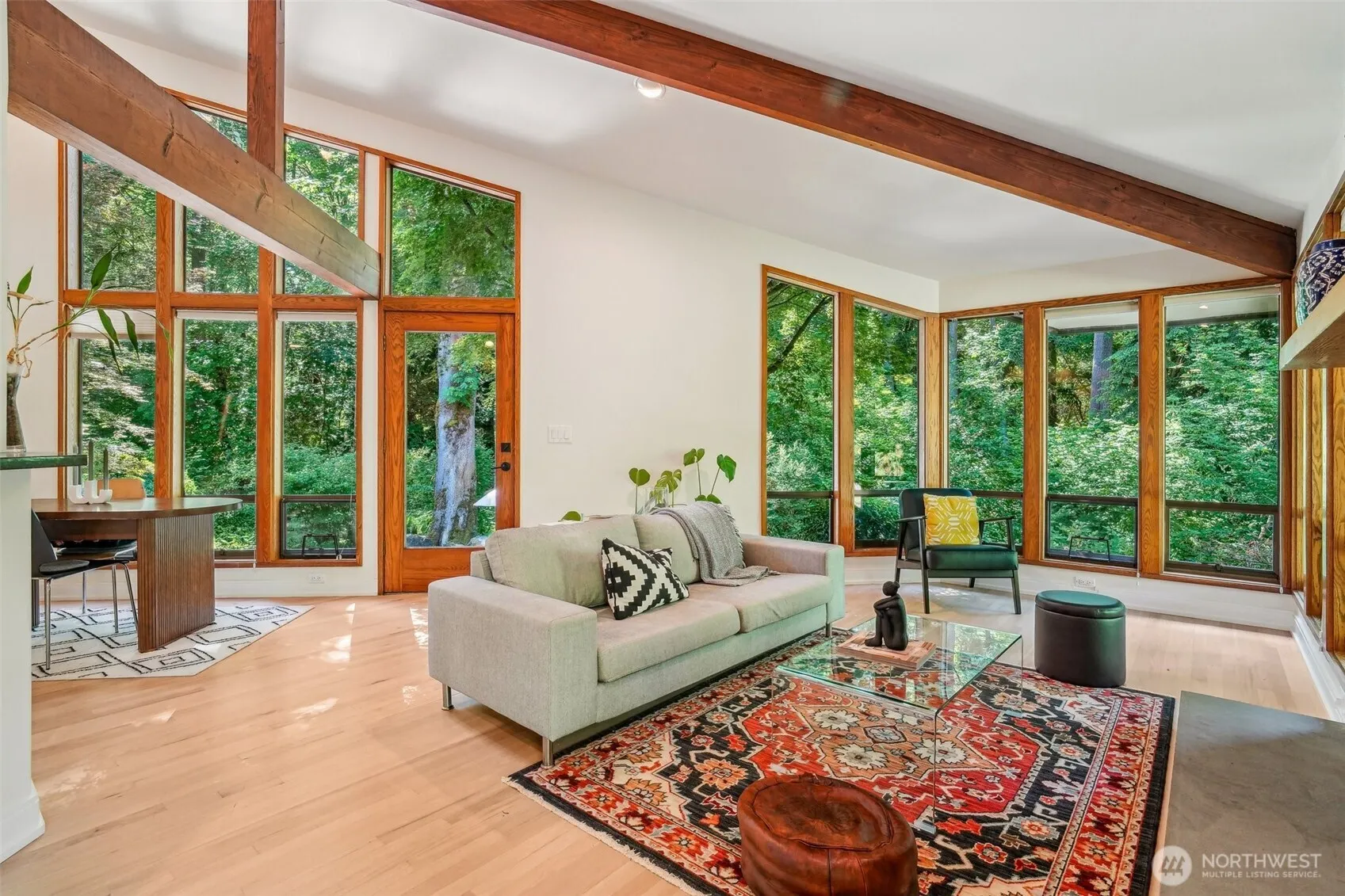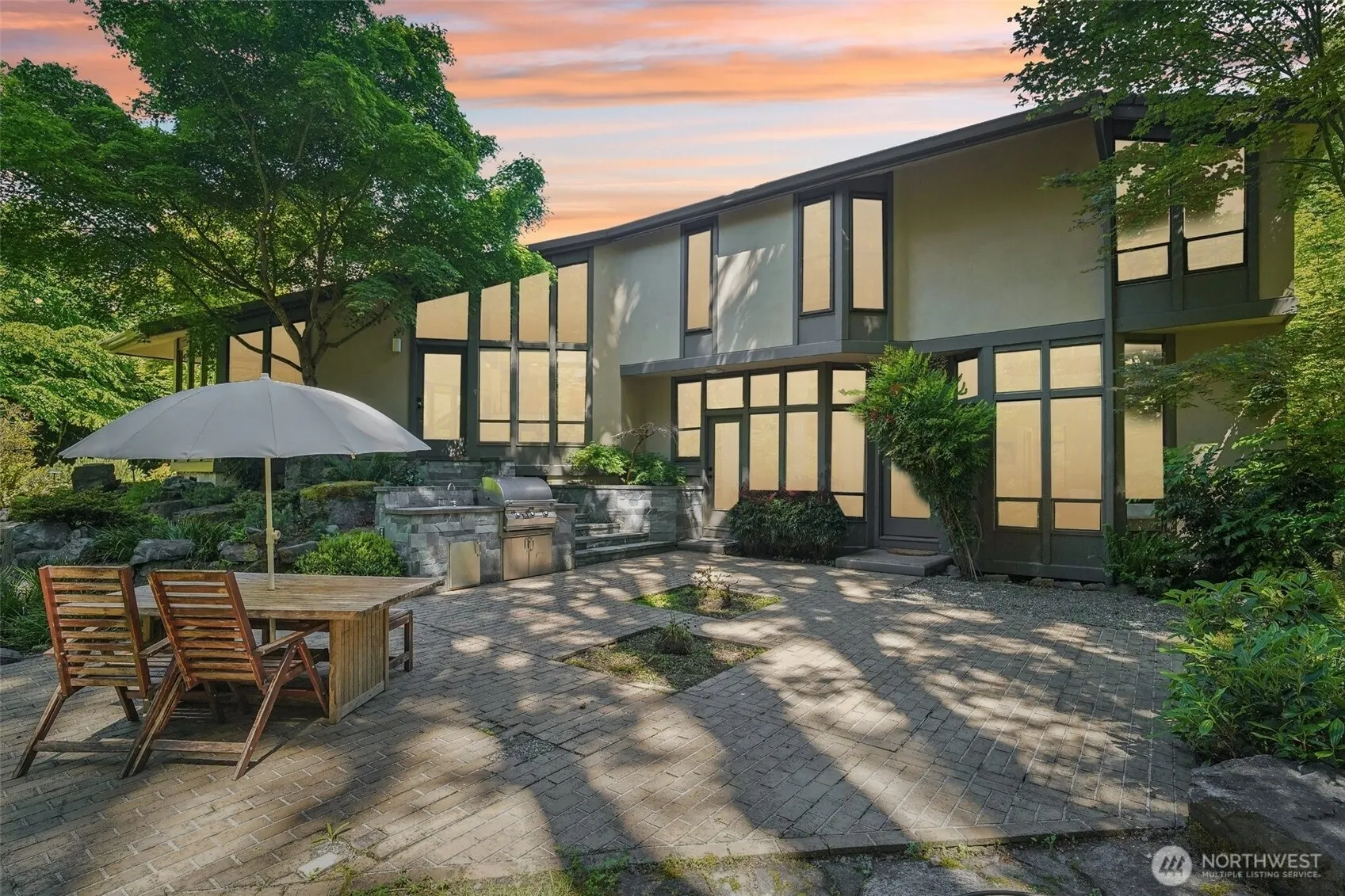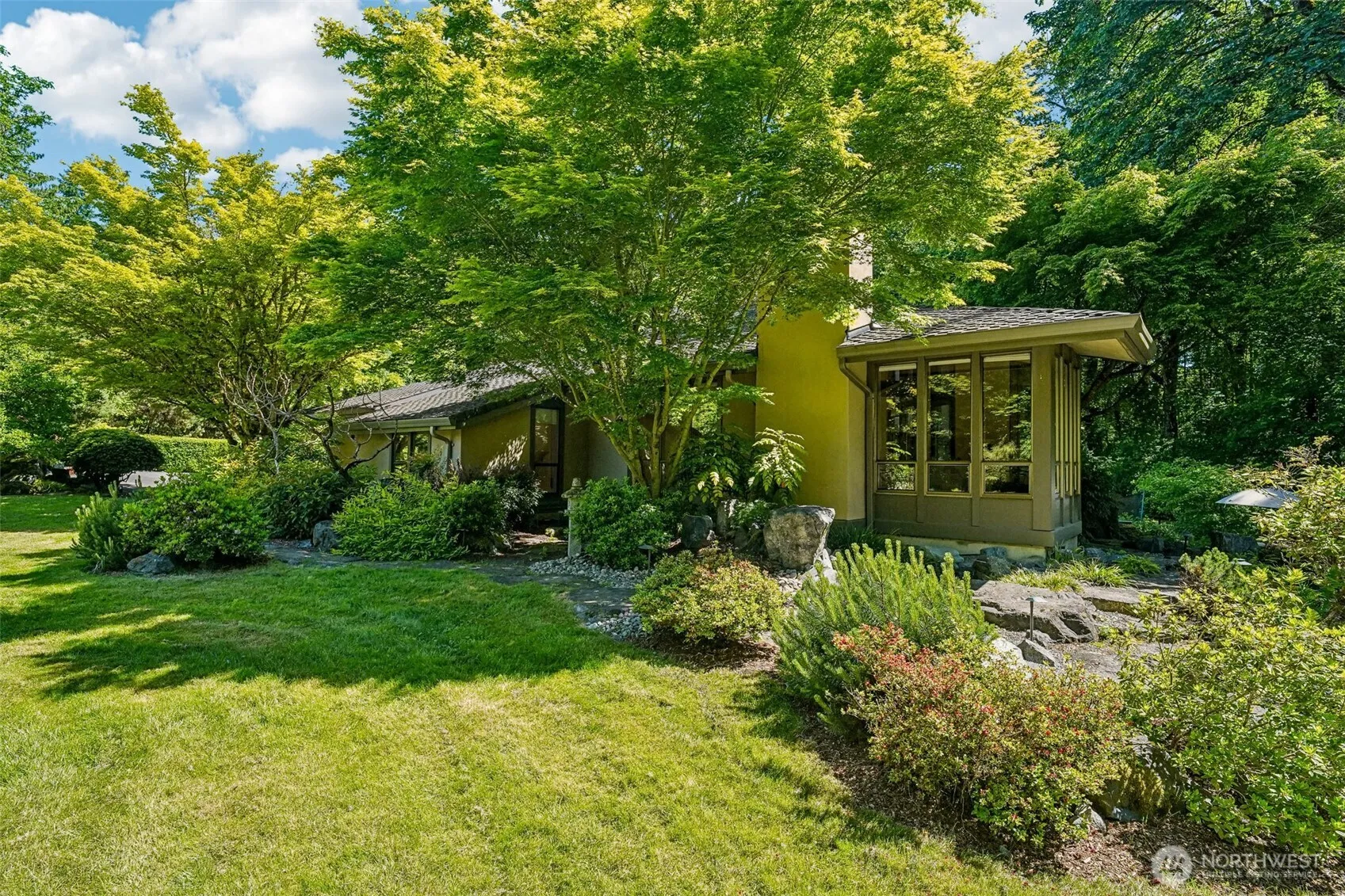 Private Hollywood Hill Oasis! Nestled at the end of a quiet lane, this 1.34-acre estate blends privacy, nature, and architectural elegance. A custom Northwest Contemporary home inspired by Frank Lloyd Wright features vaulted ceilings, wood finishes, built-ins, and walls of windows. The grounds offer Molbak’s-style landscaping, serene Zen spaces, and tranquil water features. Includes a one-stall barn, heated workshop with professional-grade greenhouse, and easy access to the Tolt Trail. Recent updates include a new presidential roof, exterior paint, and updated kitchen. A rare opportunity to own a unique, peaceful retreat.