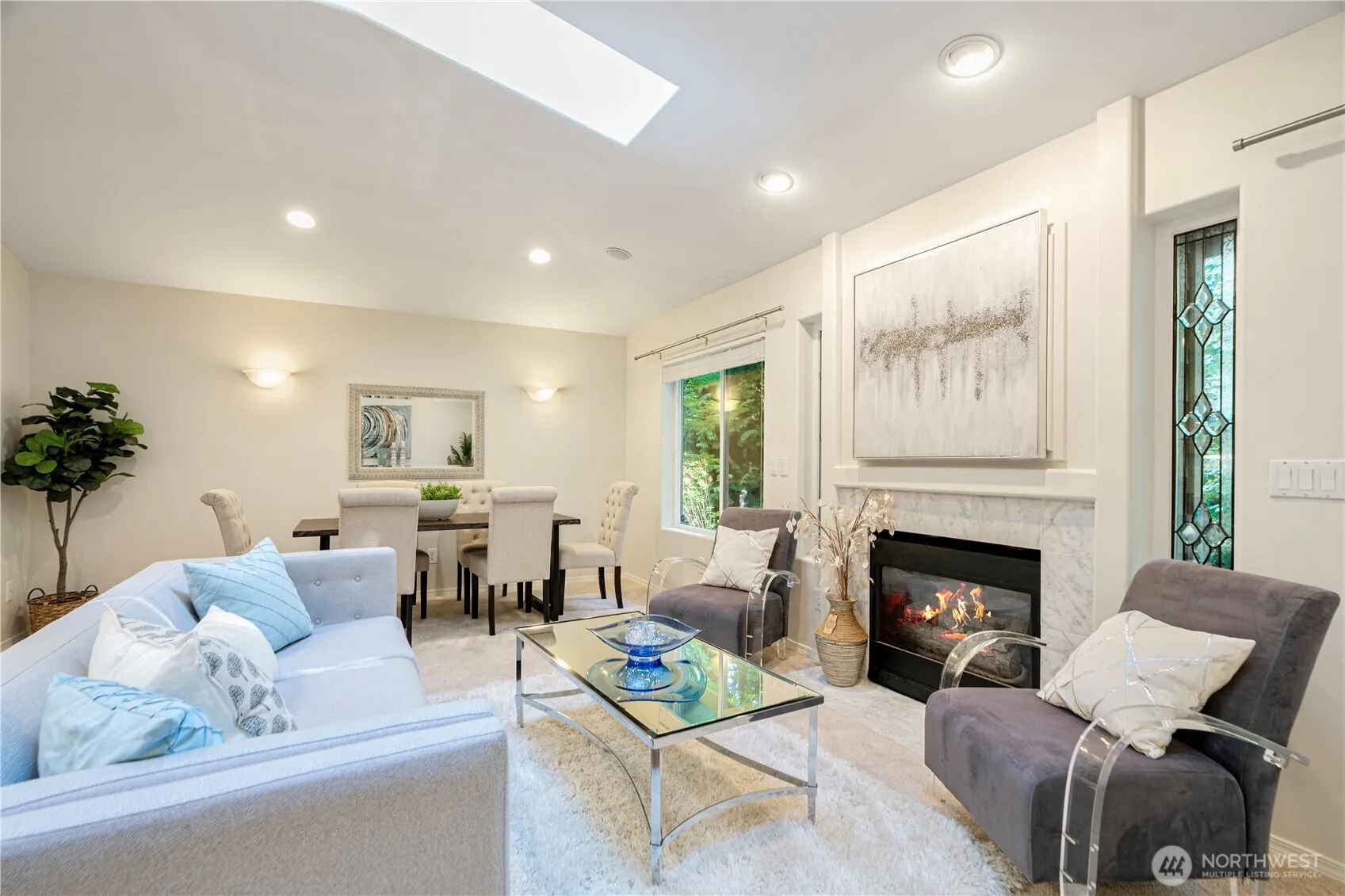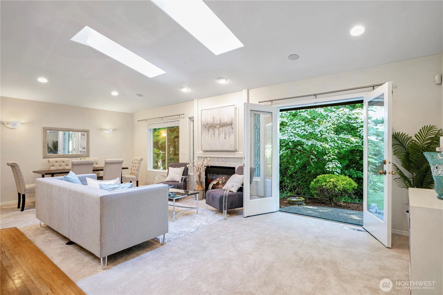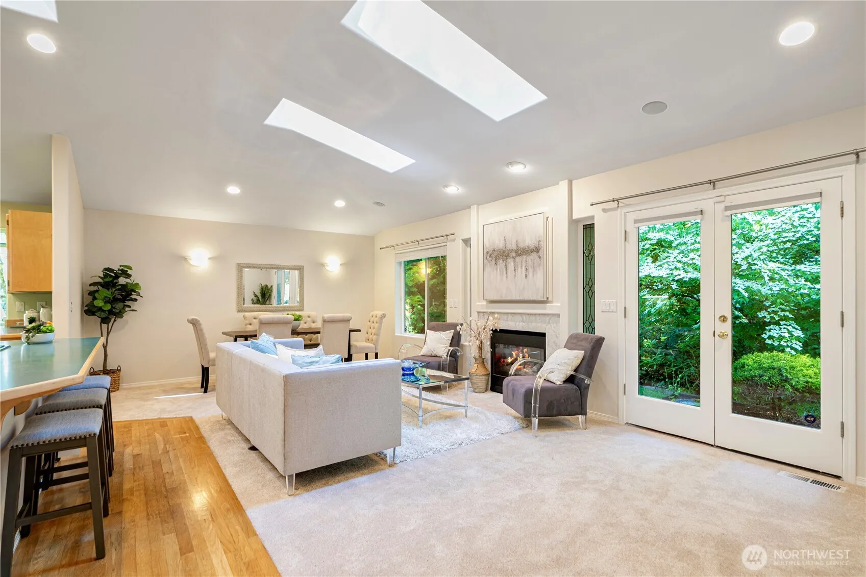 A rare find corner lot rambler awaits you in the highly coveted Chateau Woods community! Open floor plan with vaulted ceilings & skylights. Spacious primary bedroom offers walk-in closet with organizers and an ensuite bathroom with a jacuzzi and shower. The den can be converted into formal 3rd bedroom by adding closet. Gas fireplace in the living room. All high-end kitchen appliances will stay. This home features two patios facing private greenbelt, ideal for entertaining/gardening. Landscaping is maintained by HOA. The roof & garage door were installed in 2017. Fresh interior paint & more. Walkable to private neighborhood park, bike/hiking trails, popular restaurants & wineries. Minutes to Totem Lake shopping center. Esteemed NSD schools.